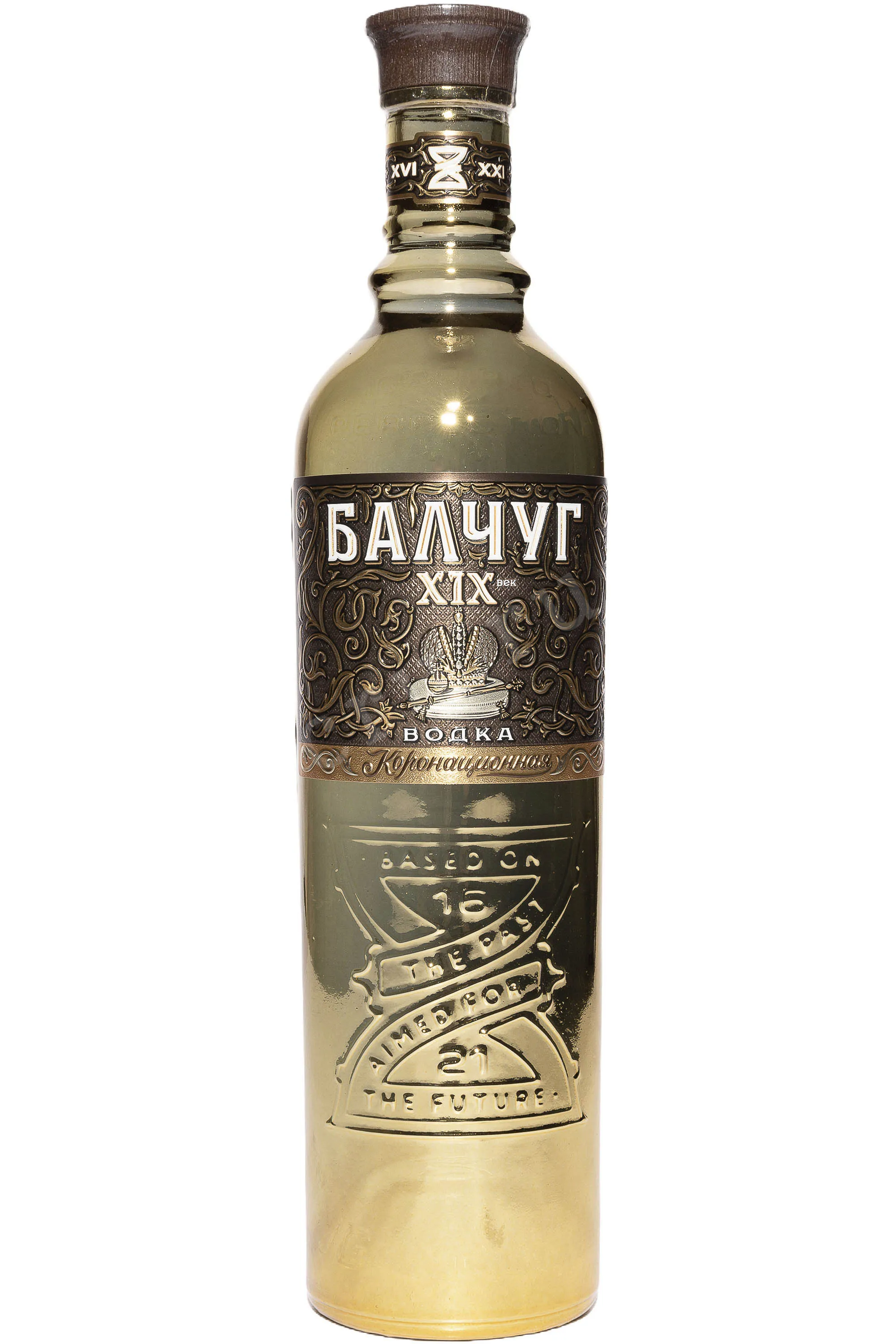 Водка Балчуг XIX век в подарочной упаковке с двумя рюмками 0.5 л — премиальный спиртной напиток, созданный как дань уважения русской истории и традициям водочного мастерства. Основа — солодовый спирт класса «Альфа», известный своей высокой чистотой и мягкостью. В состав входят натуральные спиртовые настои корня женьшеня и мелиссы, которые придают напитку тонкую пряность и лёгкие травяные оттенки. Производство сочетает старинные методы и современные технологии: двойная ректификация обеспечивает исключительную чистоту, а угольная фильтрация делает вкус особенно мягким. Линия «Балчуг» названа в честь острова, где в XVI веке Иван Грозный открыл первый кабак. Форма бутылки вдохновлена скипетром царя, а рельефные песочные часы символизируют преемственность эпох. Водка «Балчуг XIX век» известна как коллекционный продукт, воплощающий дух коронационной эпохи Александра III и эстетику русского возрождения.