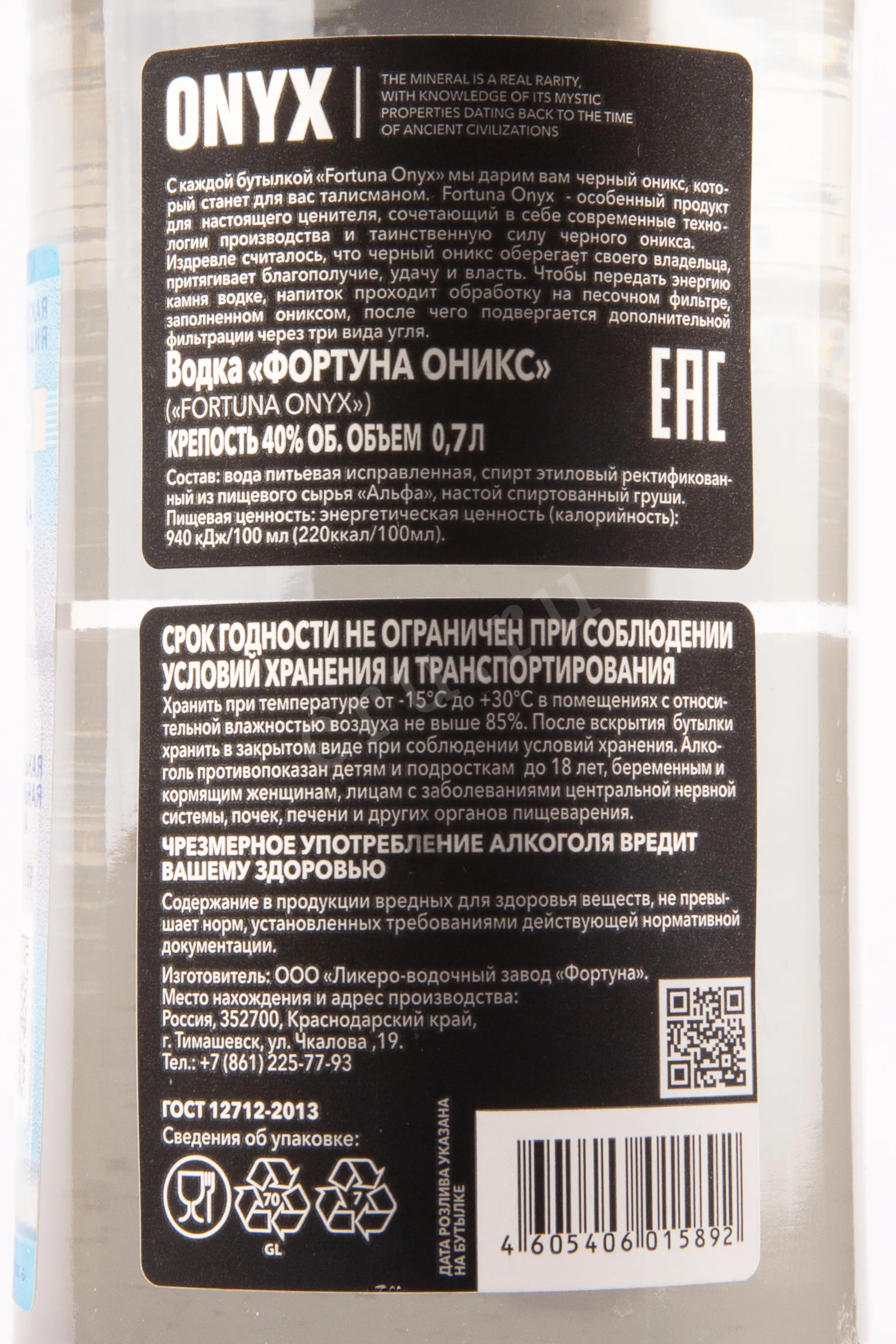 Фортуна Блэк Оникс 0.7 л купить Водка Fortuna Black Onyx цена в магазине КРЮ ПРОФИ