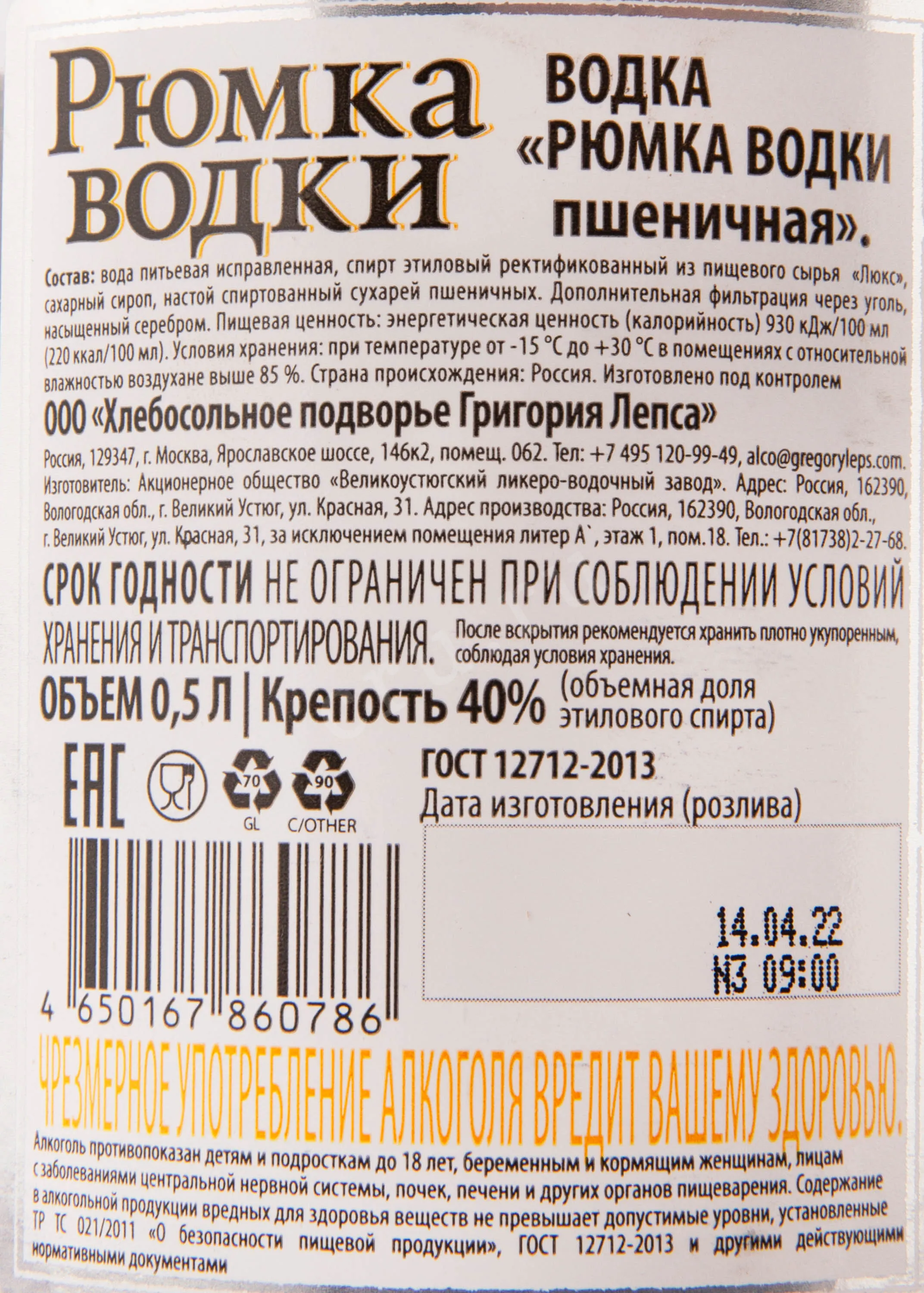 Рюмка Водки пшеничная 0.5 л купить Водка Glass of Vodka wheat цена в магазине КРЮ ПРОФИг. Москва, ул. Профсоюзная, д. 16/1010:00-22:00 Ежедневно+7 (495) 920-20-02info@cru.ru