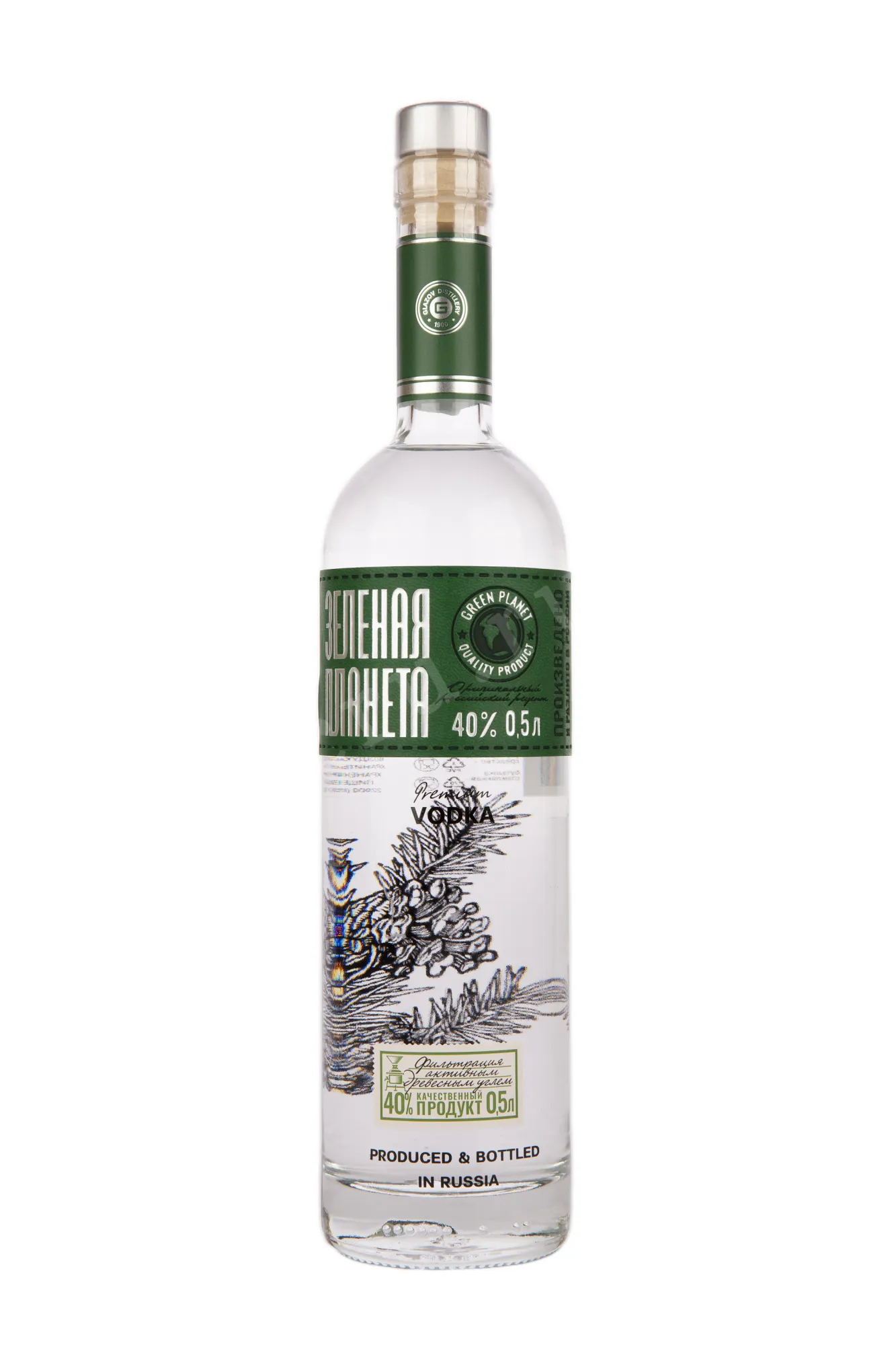 Водка Green Planet 0.5 l – это натуральный российский алкоголь, который производится на Глазовском ликеро-водочном заводе. Изготавливается напиток на базе ректификованного спирта категории «Люкс» и исправленной питьевой воды. Также в состав 40-процентной водки входят настои семян мака, пшеницы и кедровых орехов, небольшое количество сахарного сиропа и натуральный мед. Перед розливом алкоголь подвергается кварцевой и угольной фильтрации для очищения от осадка. Готовая водка представлена в классическом вытянутом сосуде из прозрачного стекла объемом 500 мл.