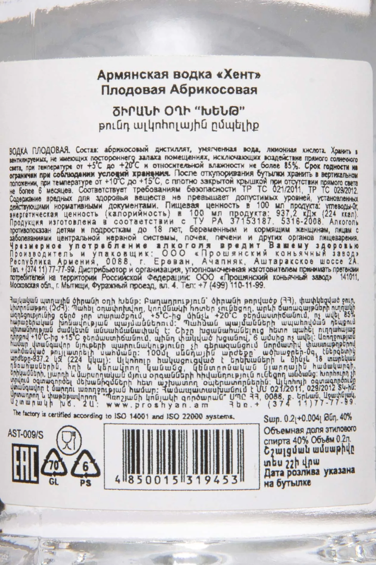 Хент Абрикосовая 0.2 л купить Водка Hent Apricot цена в магазине КРЮ ПРОФИ