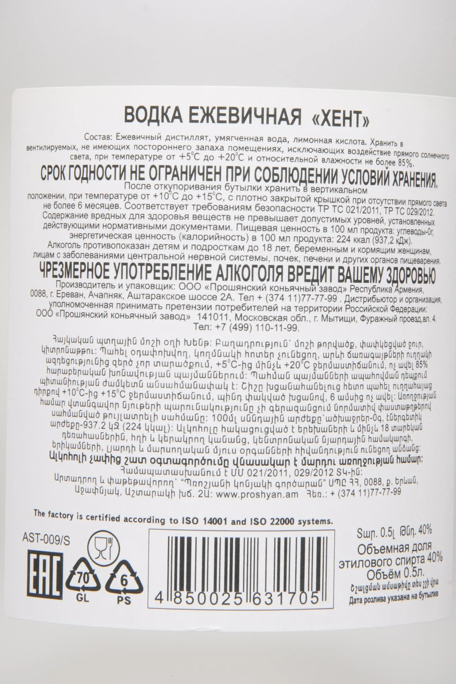 Водка Хент Ежевичная 0.5 л создавалась по традиционной технологии многократной дистилляции и тщательной фильтрации, что обеспечивало чистоту и мягкость напитка. В её составе использовались натуральные ягоды ежевики, выращенные в благоприятных условиях Армении, где горный климат и плодородные почвы придавали сырью насыщенный вкус и аромат. Настой из свежих ягод обогащал классическую основу глубоким фруктовым характером, придавал лёгкую сладость и тонкий оттенок свежести. Производитель уделял особое внимание сохранению природной гармонии вкуса, благодаря чему напиток получил яркий характер, сохраняя при этом мягкость и утончённость.