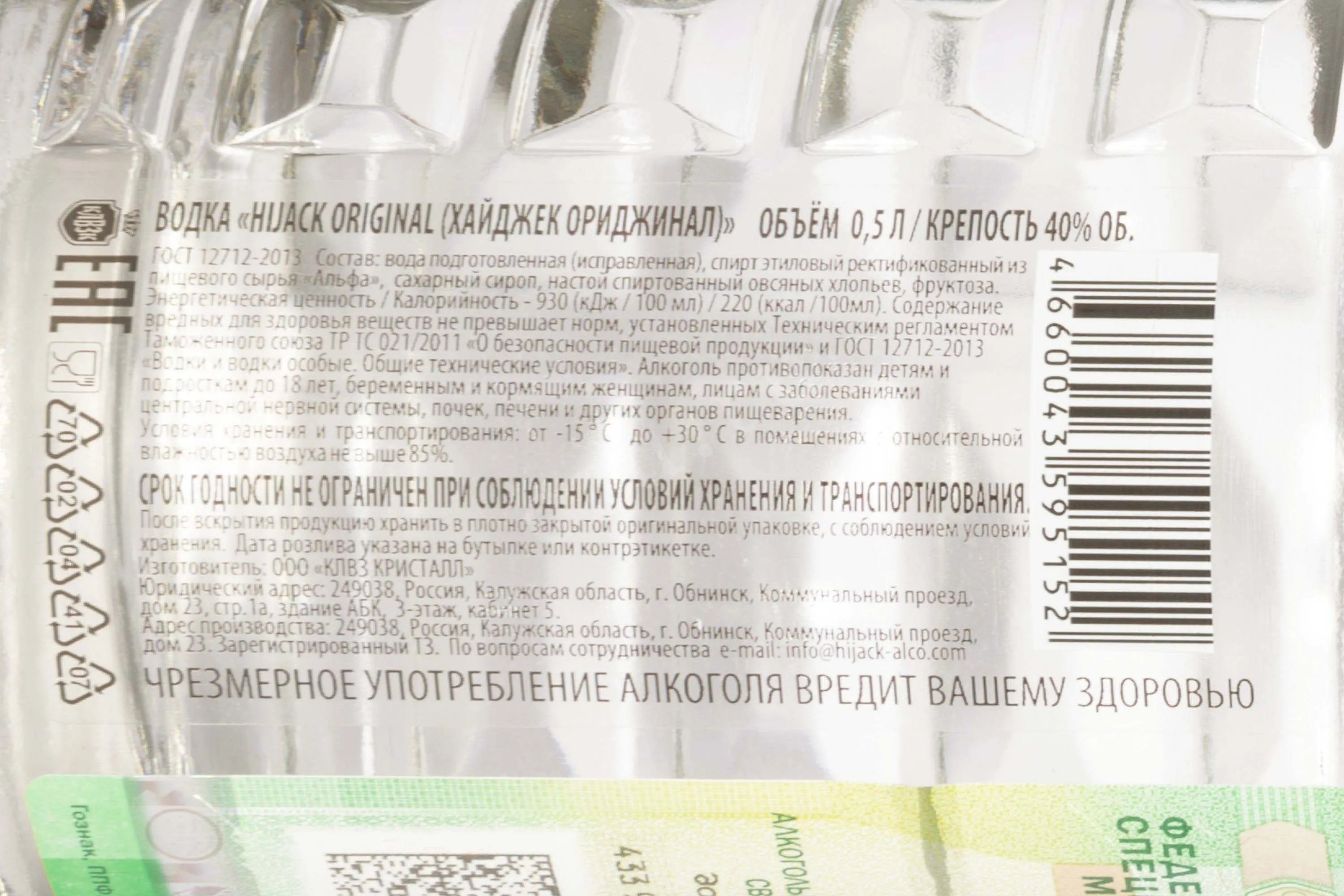 Водка Hijack Original 0,5 л — классический напиток, созданный по строгим стандартам ГОСТ из натуральных ингредиентов. Основой рецептуры является премиальный спирт «Альфа» в сочетании с тщательно подготовленной водой. Для придания напитку особой мягкости в его состав входит спиртовой настой овсяных хлопьев и фруктоза. Производится водка Хайджек Орижинал на заводе «КЛВЗ Кристалл» в Обнинске с применением современных технологий и строгого контроля качества. Бутылка имеет лаконичный и стильный дизайн, подчеркивающий характер напитка.