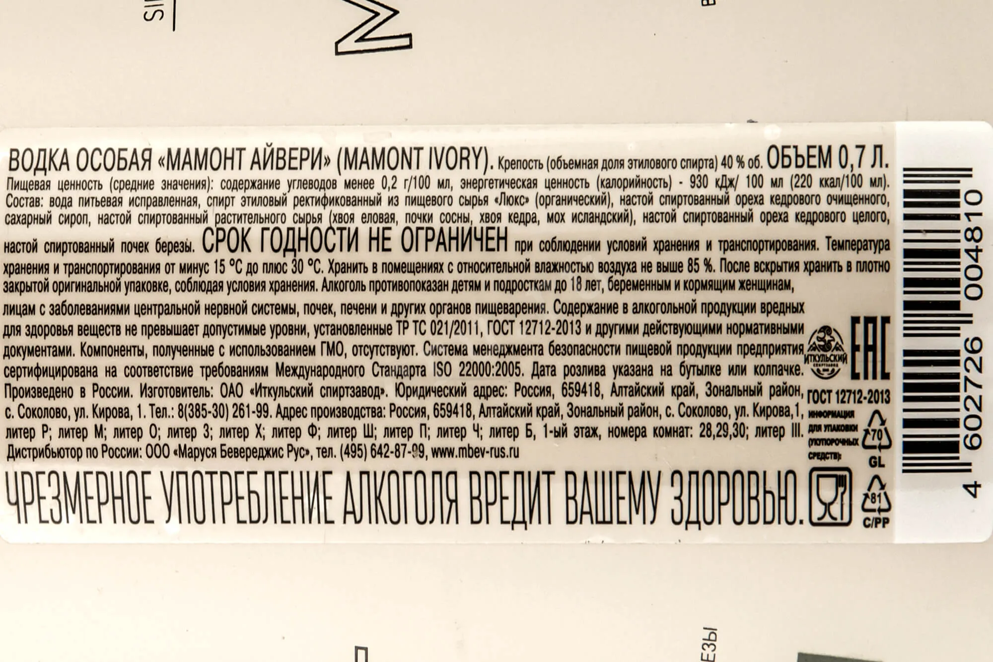Мамонт Айвери 0.7 л купить Водка Mamont Ivory цена в магазине КРЮ ПРОФИг. Москва, ул. Профсоюзная, д. 16/1010:00-22:00 Ежедневно+7 (495) 920-20-02info@cru.ru