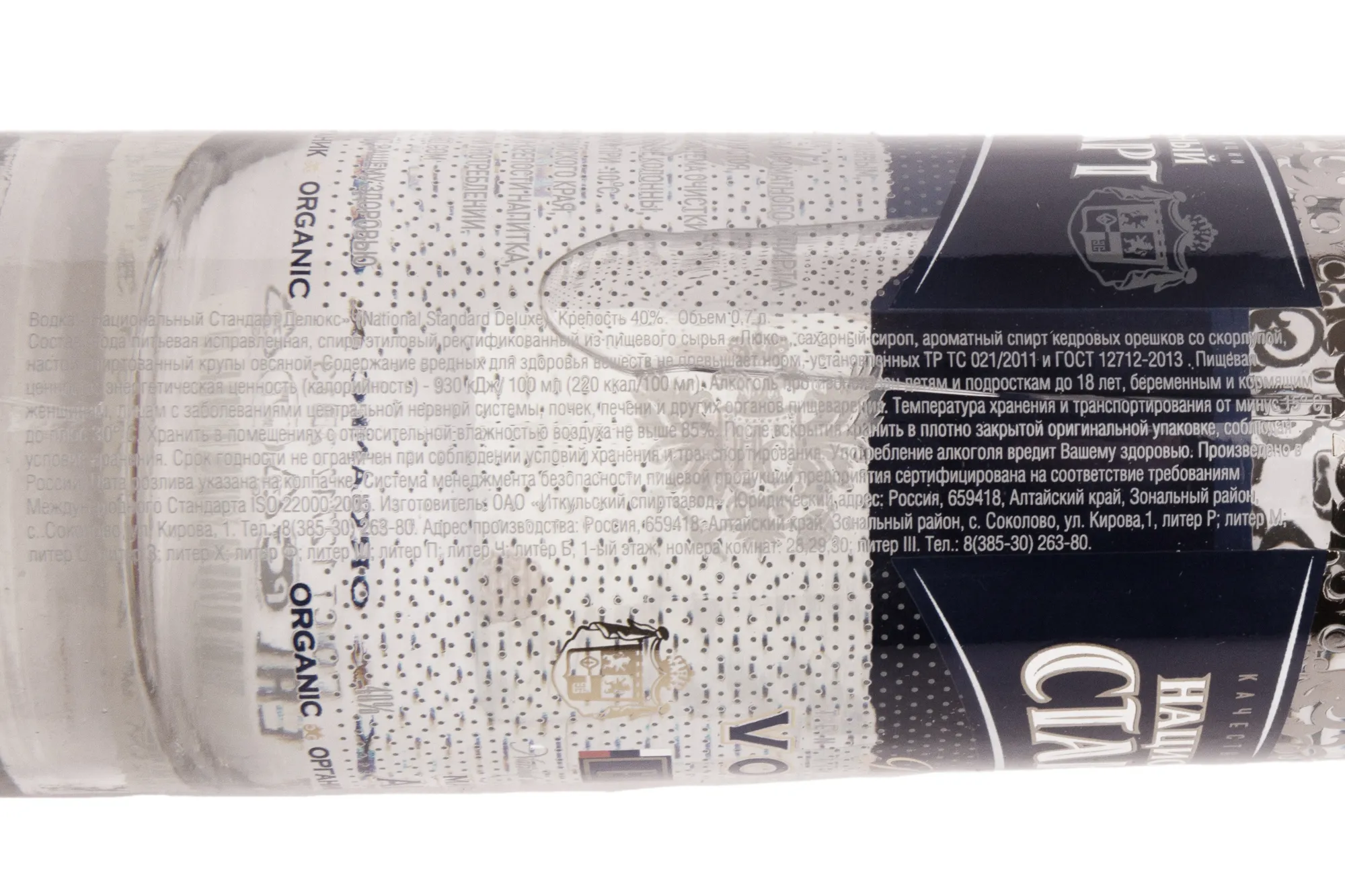 Водка National Standart Deluxe 0.7 l – это премиальный алкоголь, производимый на российском Иткульском заводе из экологически чистых компонентов: солодового и кедрового спирта и артезианской воды. 40-процентный напиток выпускается в уникальных фирменных бутылках с орнаментом из золота, платины и керамики.