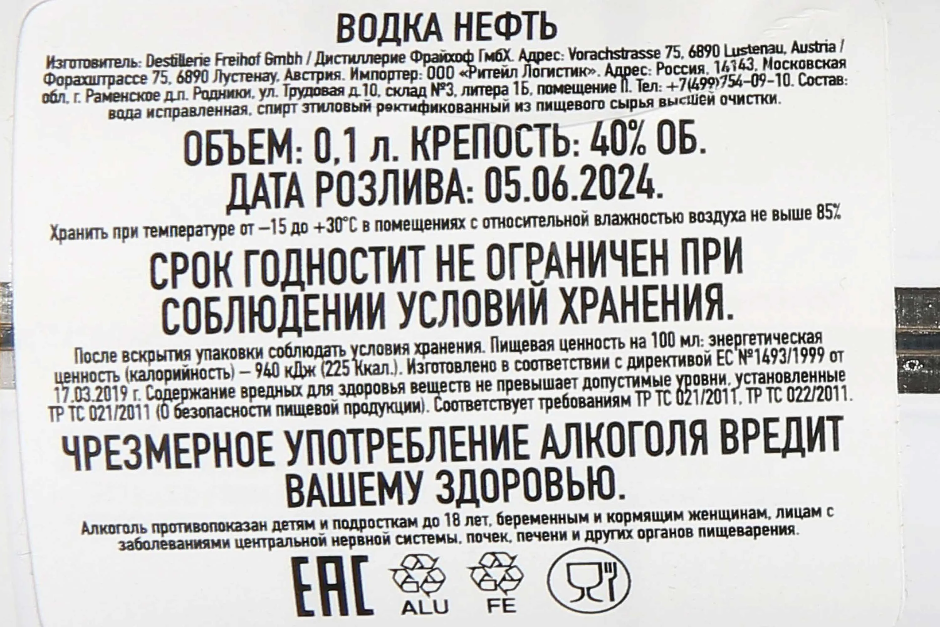 Нефть белая упаковка 0.1 л купить Водка Neft White цена в магазине КРЮ ПРОФИ