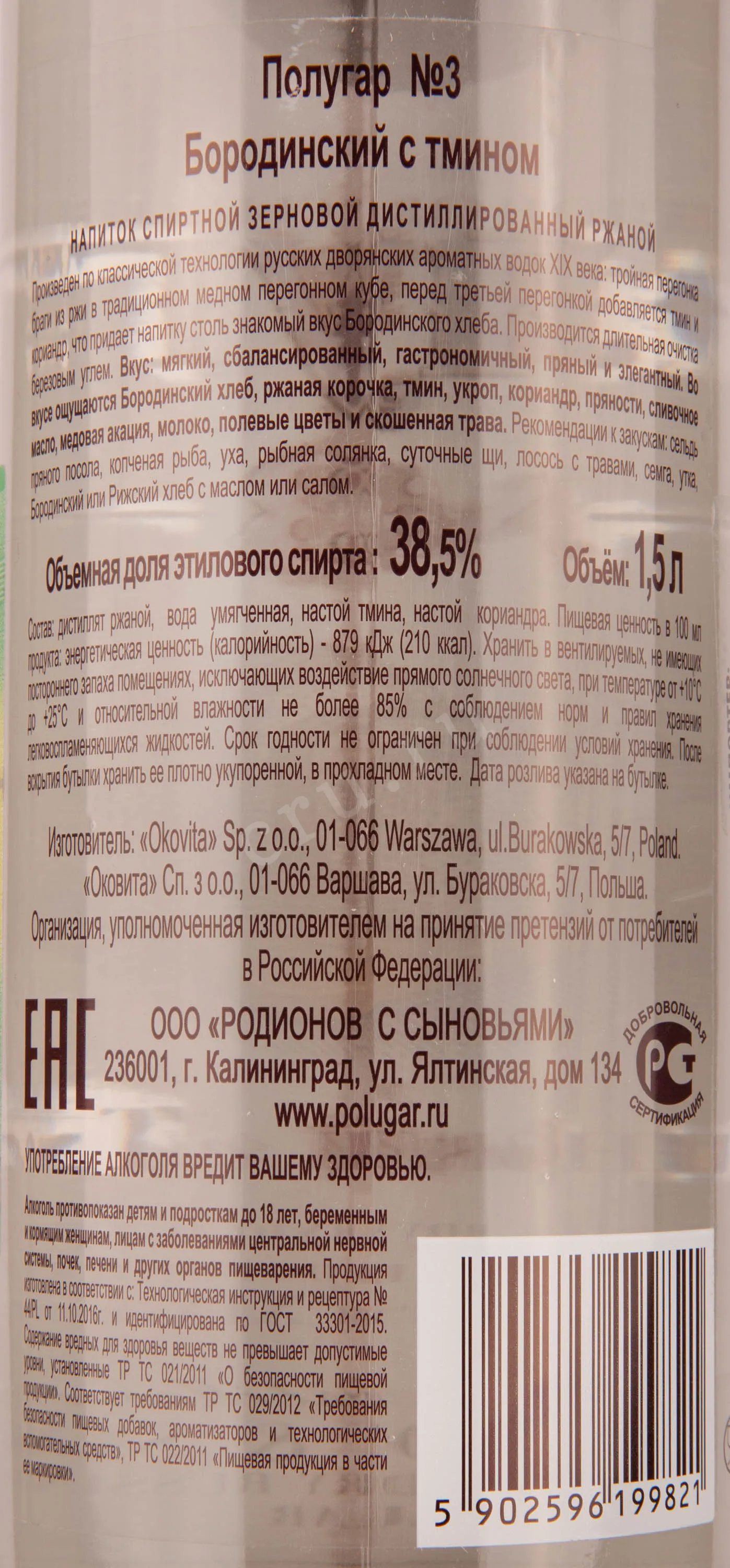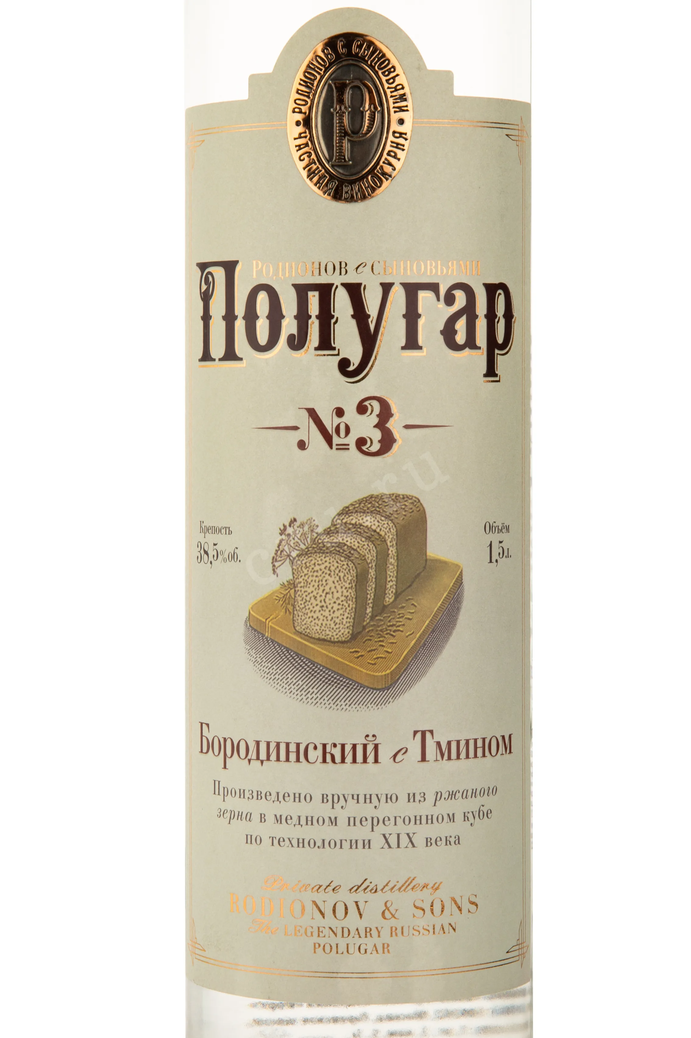 Полугар №3 Бородинский с Тмином 1.5 л купить Водка Polugar No 3 Caraway цена в магазине КРЮ ПРОФИ