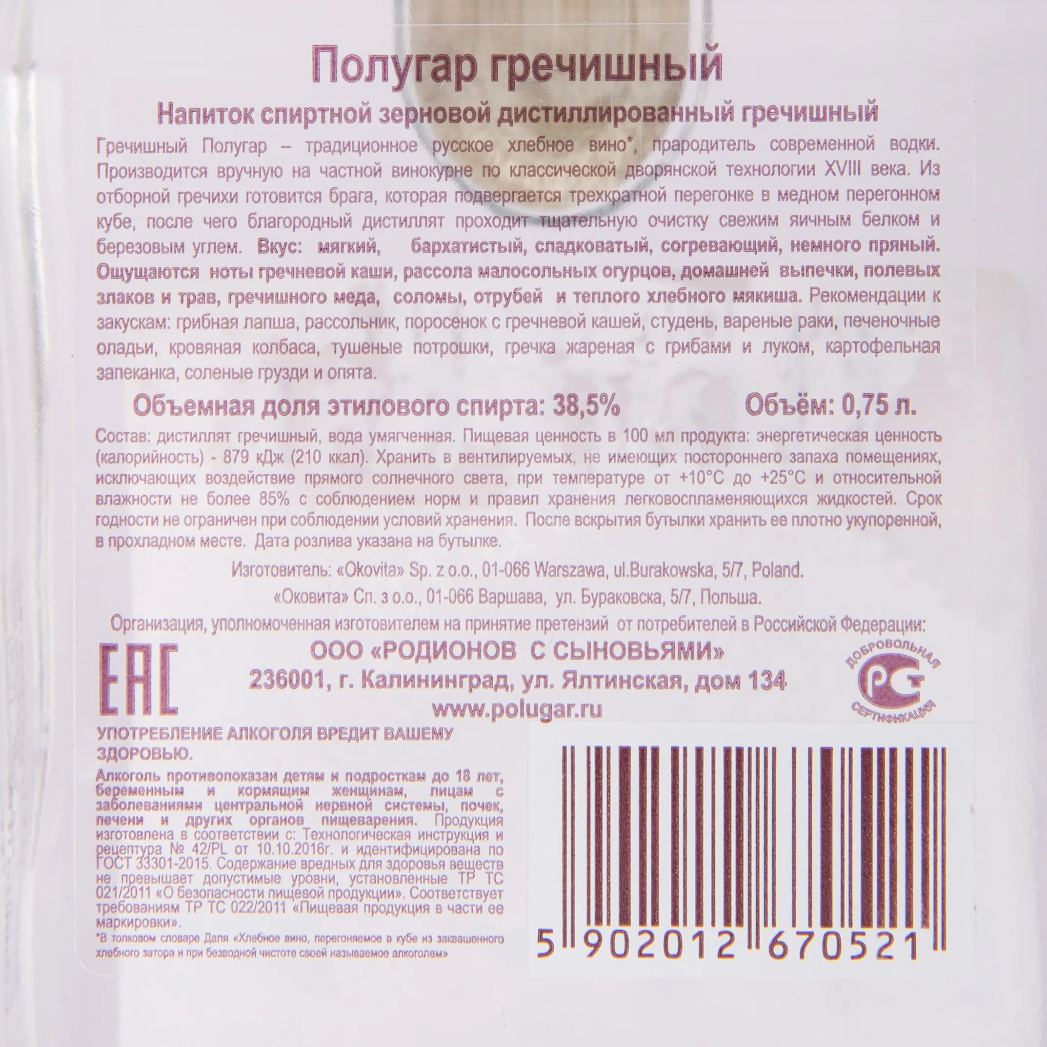 Полугар Гречишный в подарочной коробке 0.75 л купить Водка Polugar Buckwheat with gift box цена в магазине КРЮ ПРОФИ