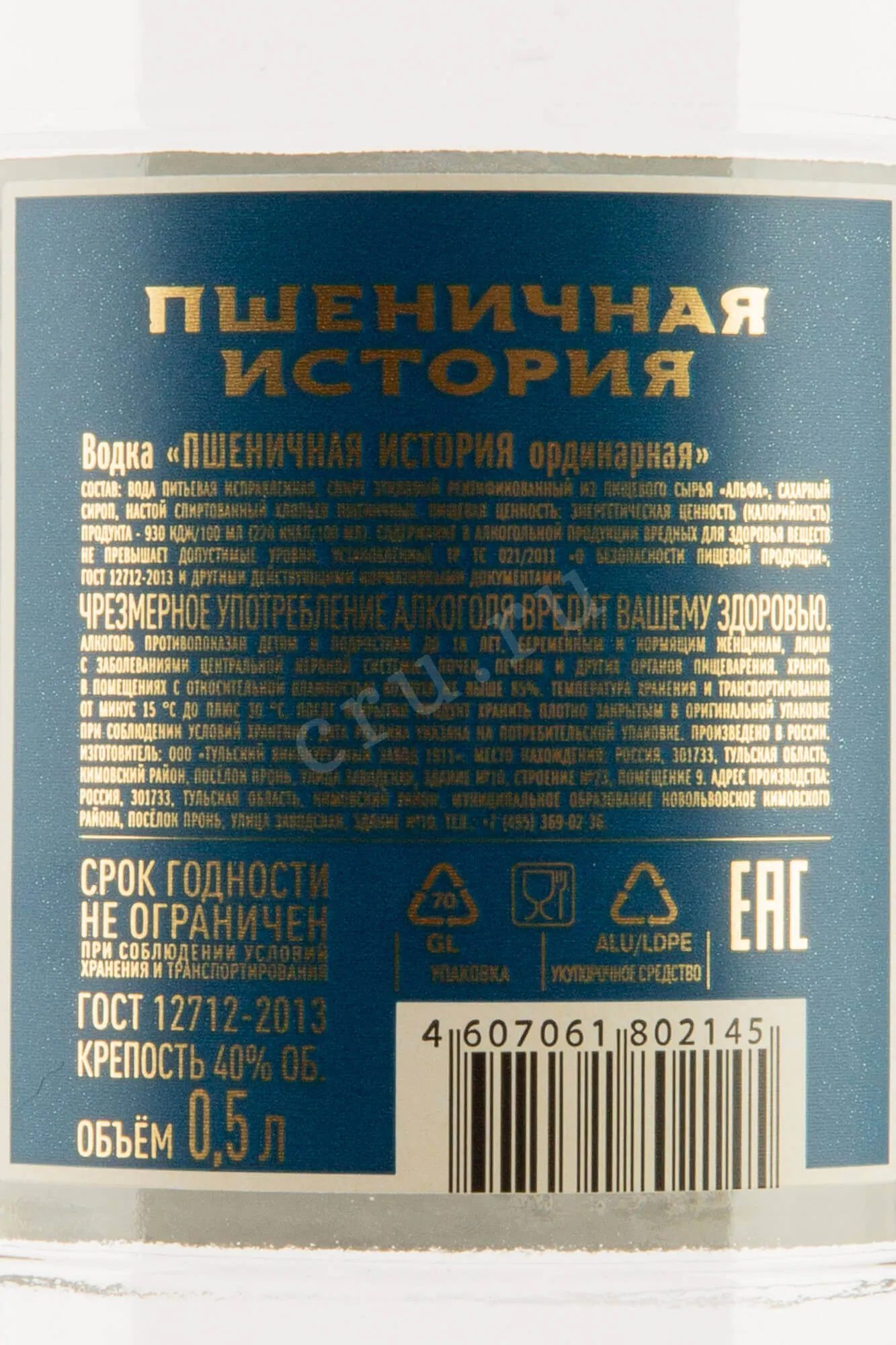 Пшеничная История Ординарная 0.5 л купить Водка Pshenichnaya Istorya Ordinary цена в магазине КРЮ ПРОФИ