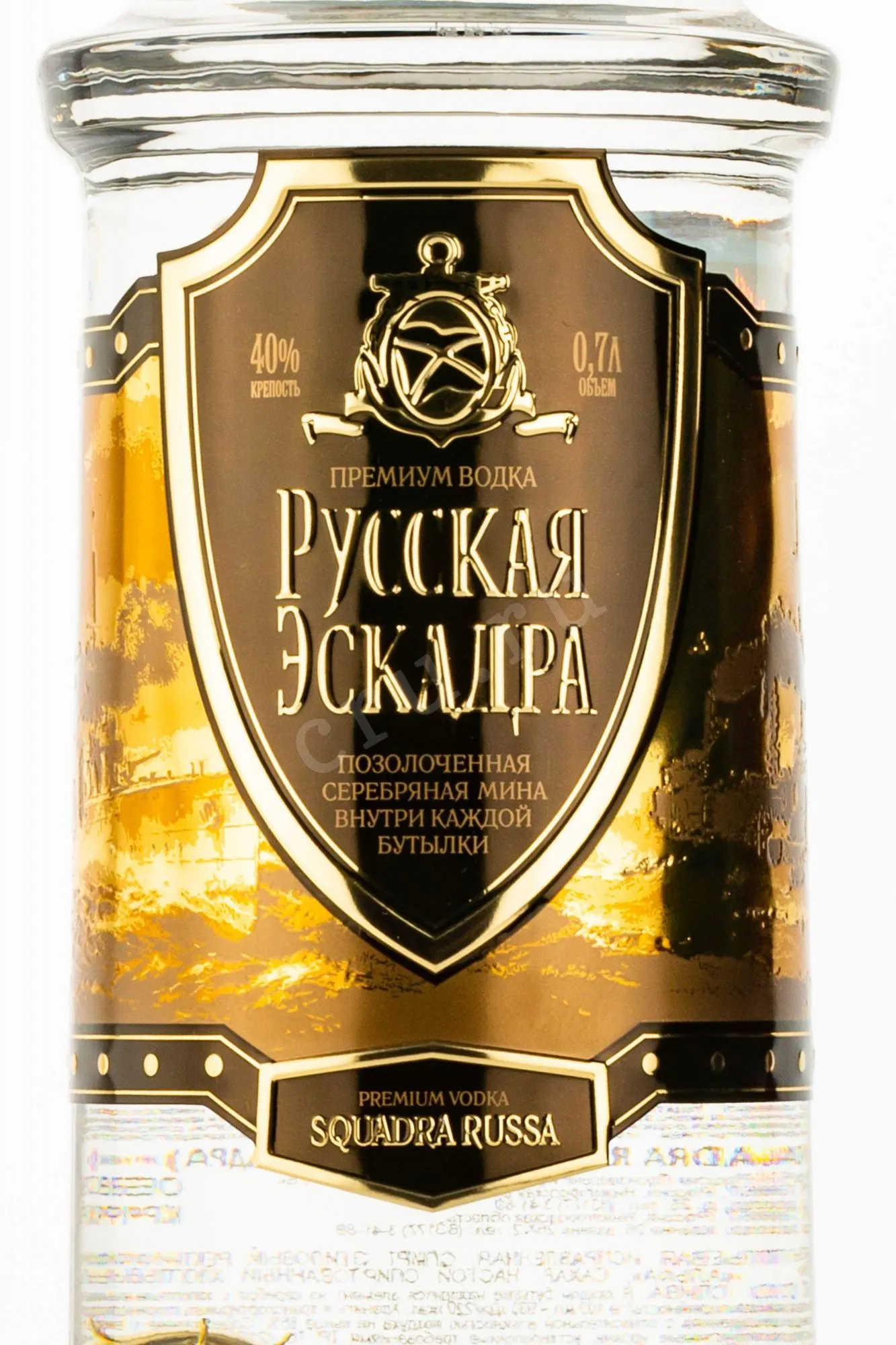 Русская Эскадра Золотая Мина в п/у кожа 0.7 л купить Водка Squadra Russa Miniera d'Oro leather box цена в магазине КРЮ ПРОФИ