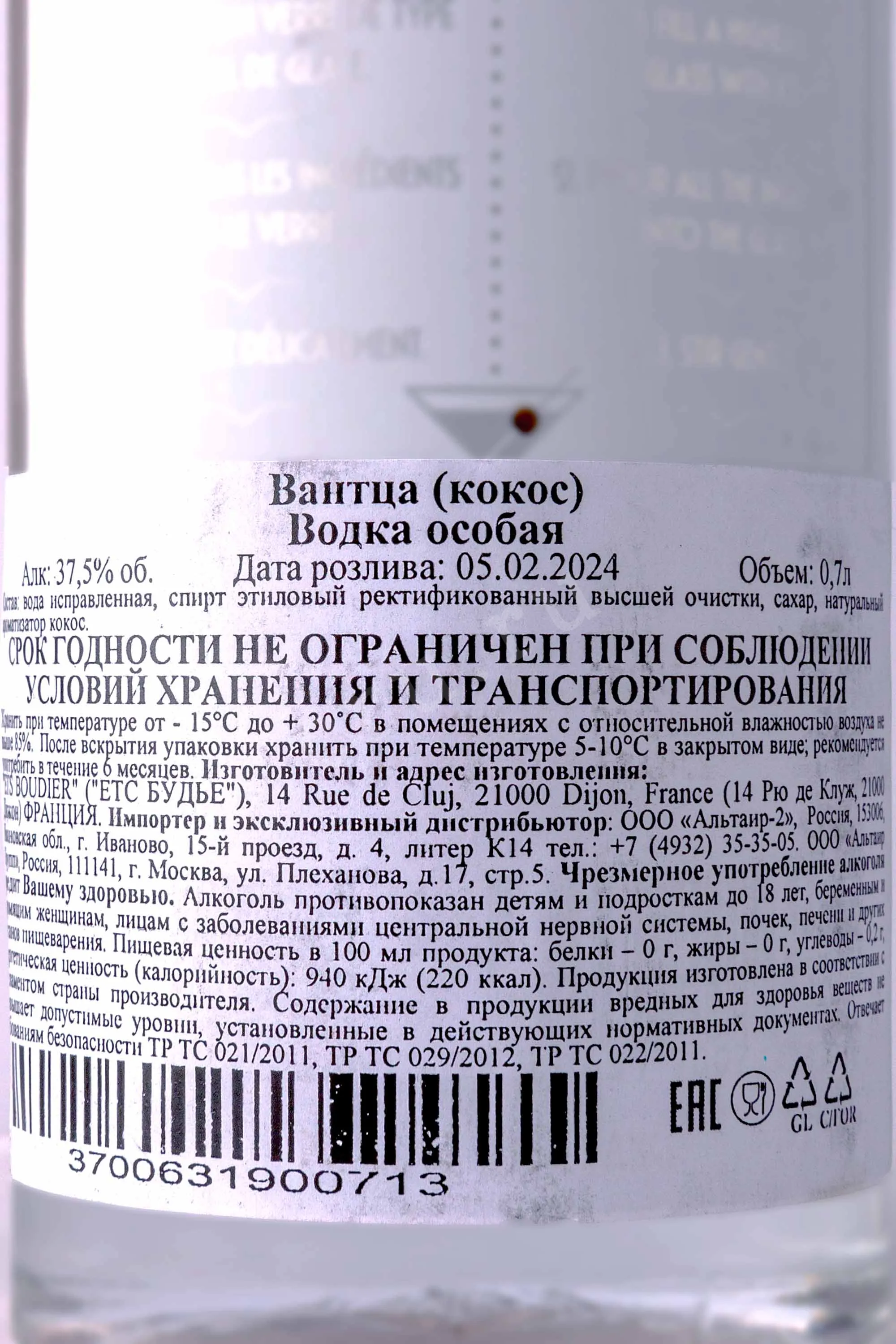 Водка Vantza Coconut 0,7 л производится во Франции, в регионе Бургундия. Для ее изготовления используется 100% французская пшеница. Процесс включает пятикратную дистилляцию в колонных аппаратах. После фильтрации в напиток добавляется натуральный аромат кокоса. Это придает водке особенный, мягкий и приятный вкус.
