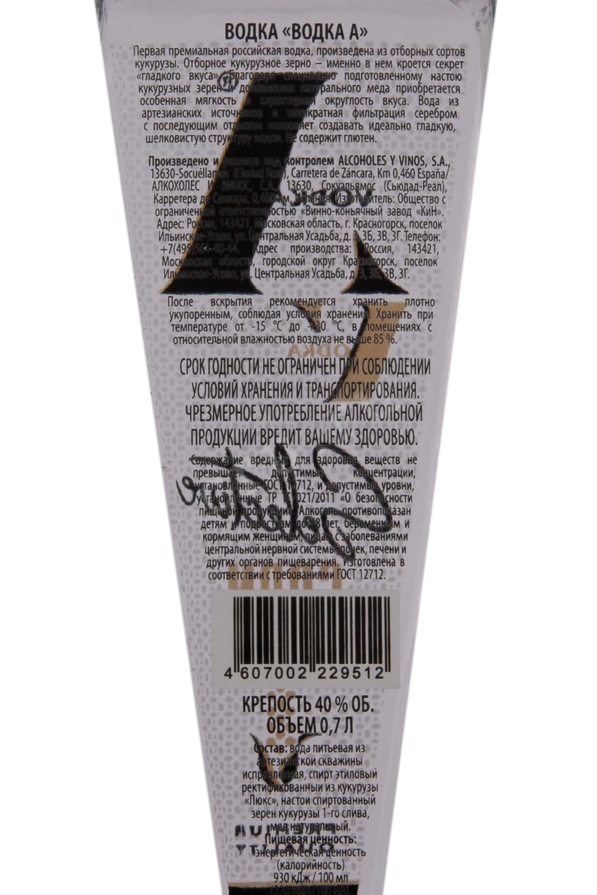 Водка А 0,7 л в п/у с 2 стопками — премиальный российский алкоголь в стильной подарочной упаковке. Напиток проходит многоступенчатую фильтрацию очистку с помощью кокосового угля. Он производится на основе отборного зернового спирта класса «Альфа» из кукурузного зерна. Особенность водки — использование чистой родниковой воды и фильтрация через природные материалы. Уникальность обусловлена добавлением натурального меда, который делает вкус особенно мягким и гладким, придает приятное послевкусие. В подарочный набор в стильном гифт-боксе помимо граненой бутылки оригинального дизайна, в которую разливается водка, входят фирменные стопки-шоты. Это отличный вариант для любого праздника и торжественного события.