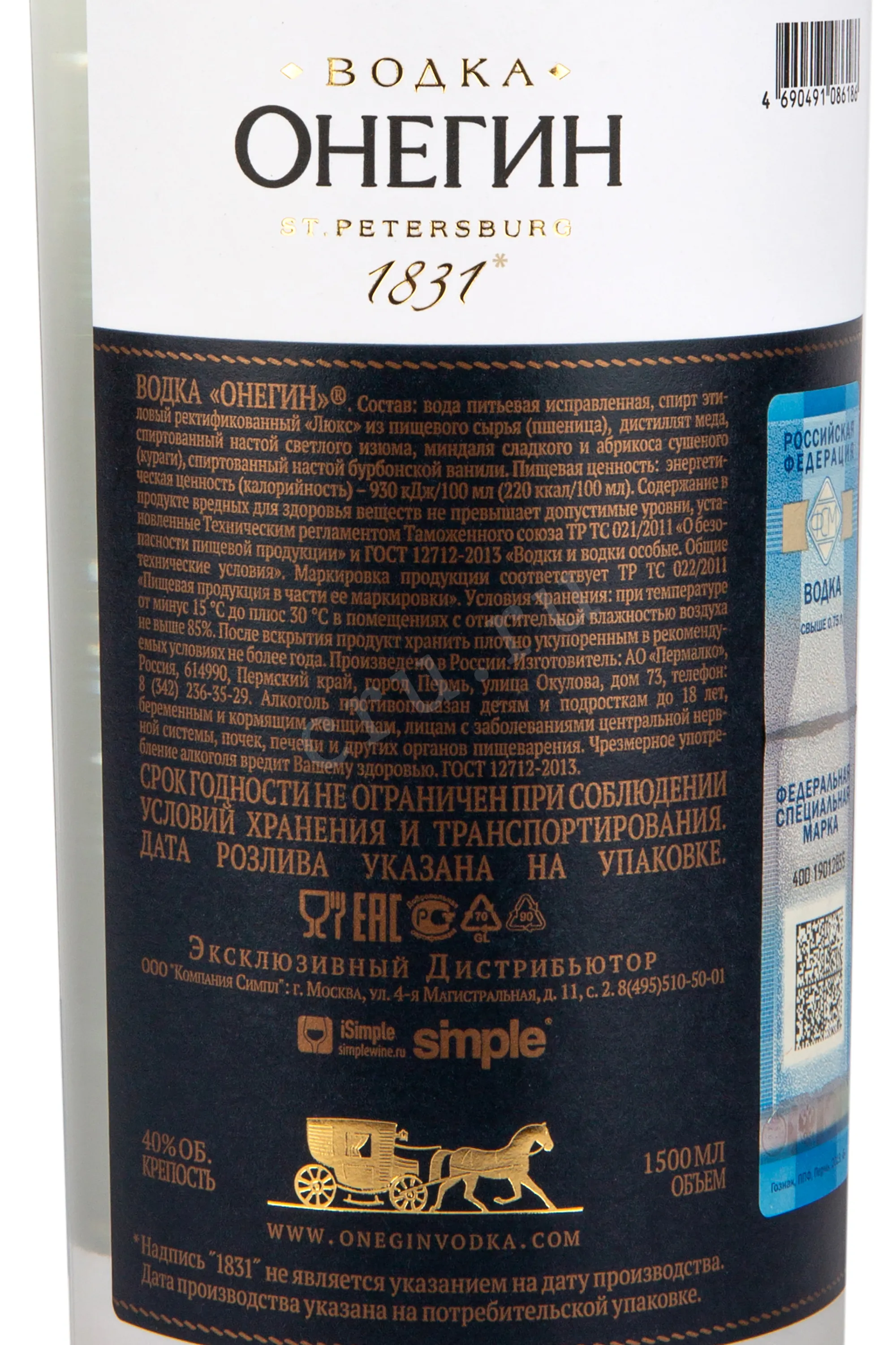 Онегин в подарочной упаковке 1.5 л купить Водка Onegin in gift box цена в магазине КРЮ ПРОФИг. Москва, ул. Профсоюзная, д. 16/1010:00-22:00 Ежедневно+7 (495) 920-20-02info@cru.ru