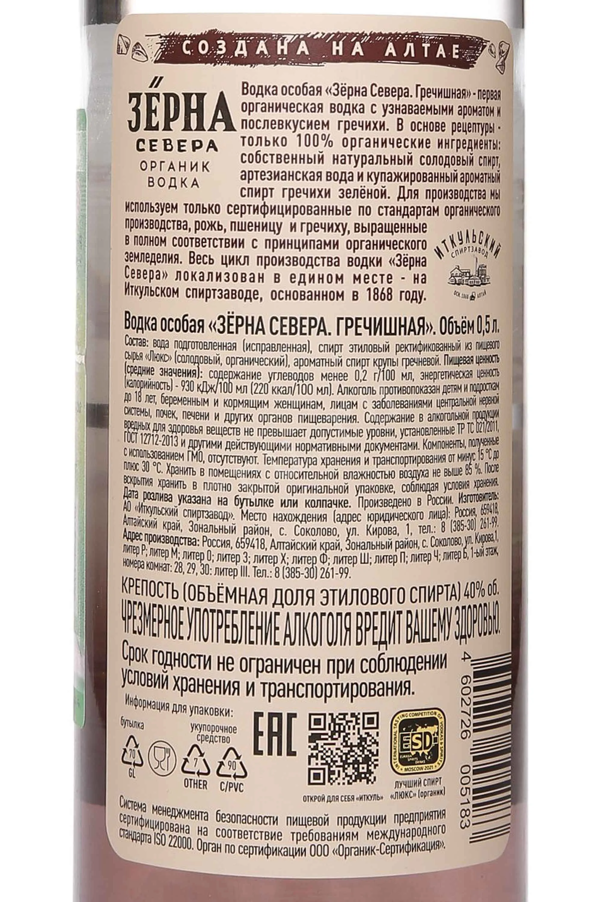 Водка Зёрна Севера Гречишная 0,5 л представляет собой редкий пример использования гречихи в производстве крепких напитков. В основе рецептуры — зерно, выращенное в северных регионах России, где короткое лето и прохладный климат способствуют накоплению концентрированного вкуса и характерного орехового тона. Производитель применяет медленную ферментацию, двойную дистилляцию и многоступенчатую фильтрацию через березовый уголь и кварцевый песок, что придает напитку мягкость и чистый профиль.