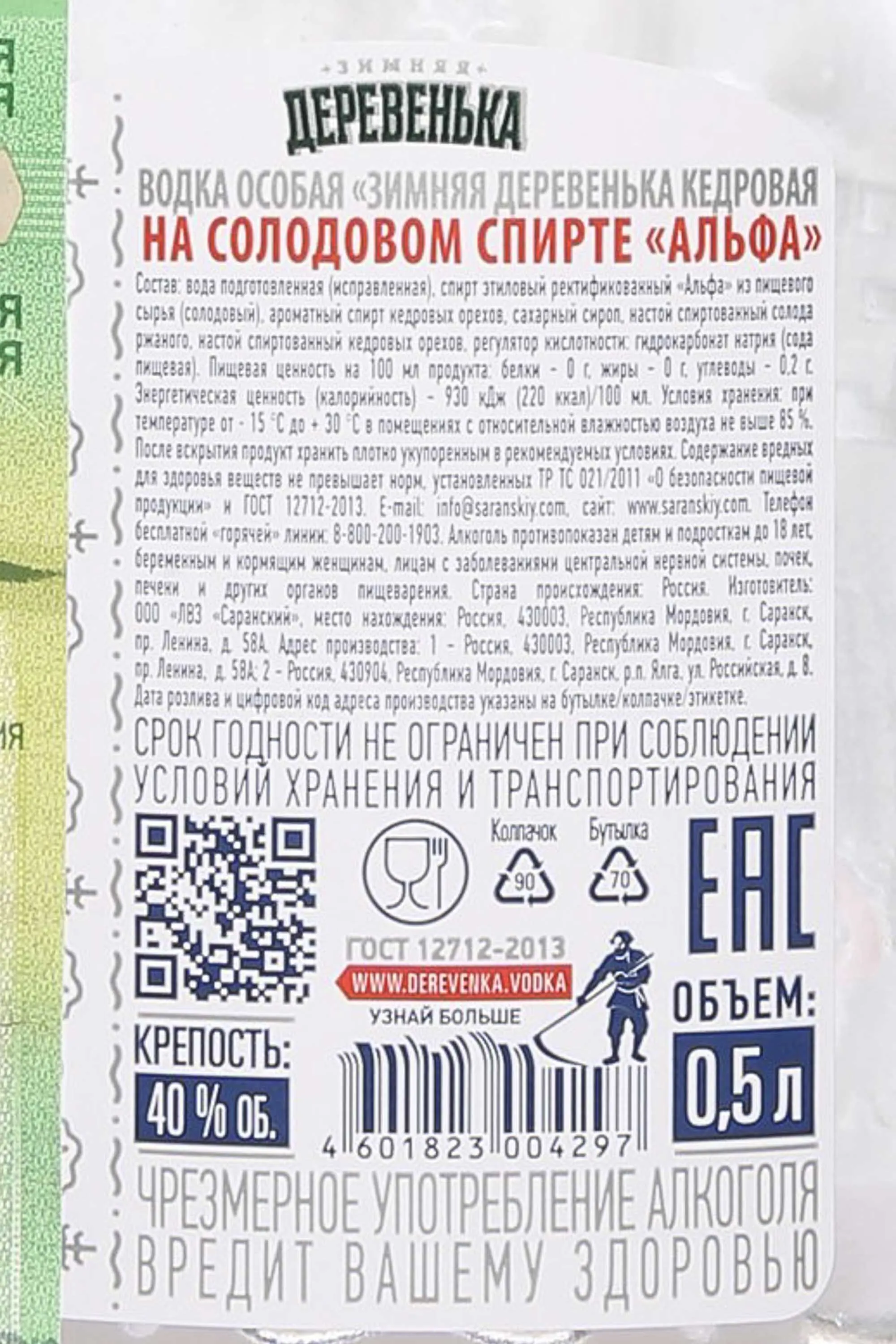 Водка Зимняя Деревенька Кедровая Солодовая 0,5 л создана в традиционном русском стиле с акцентом на натуральность и мягкость вкуса. В ее основе лежит солодовый спирт высокого качества и чистая вода, прошедшая многоступенчатую фильтрацию. Дополнительно в состав введен экстракт кедрового ореха, что придает напитку особую глубину и характер. Производство проходит по классической технологии с использованием современных методов фильтрации, которые сохраняют чистоту и делают вкус сбалансированным. Водка выделяется среди аналогов гармоничным сочетанием солодовой основы и легких кедровых оттенков, что отмечают дегустаторы и потребители. Эта особенность делает ее популярным выбором в своем сегменте.