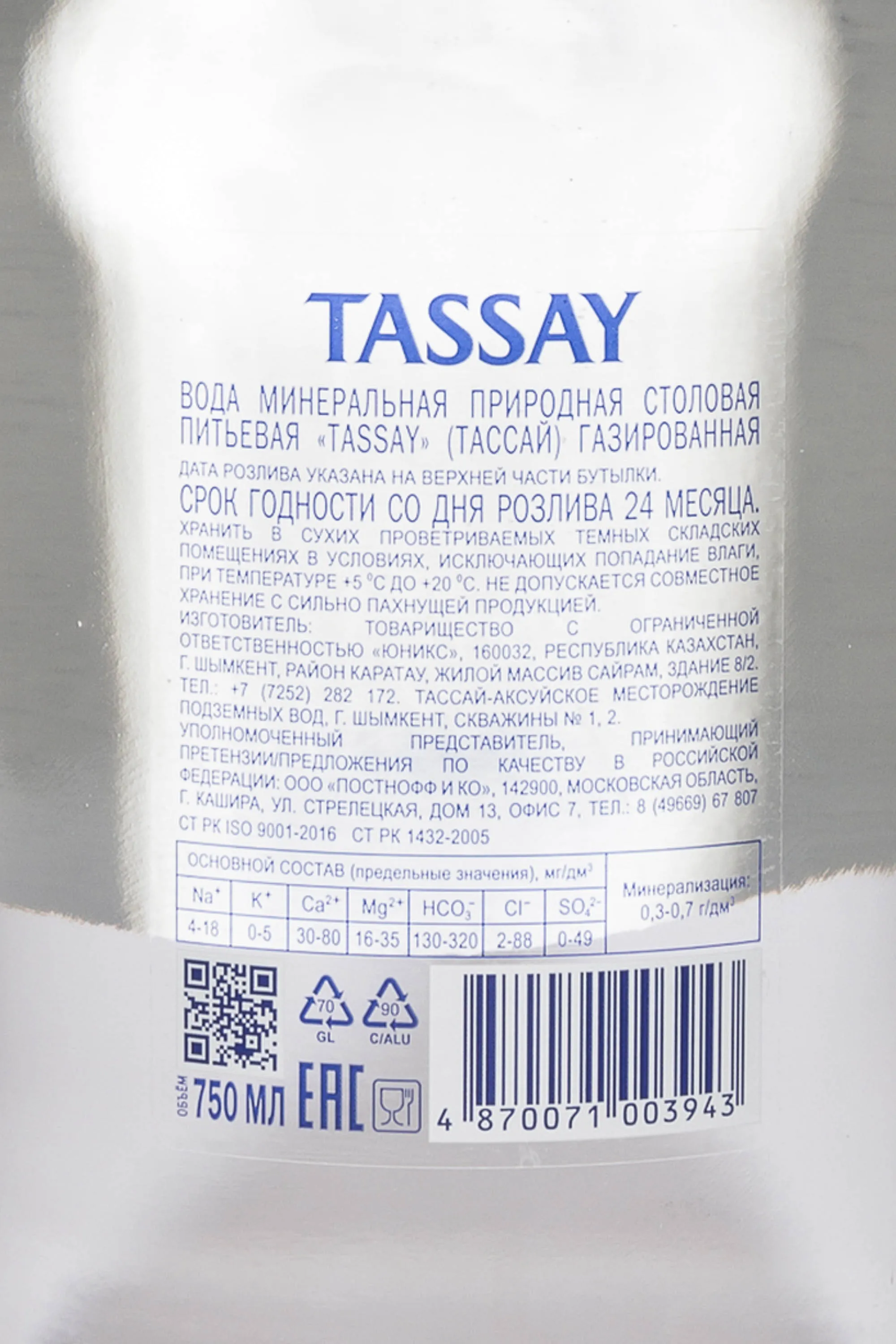 Вода Tassay Glass Bottle Sparkling 0.75 л — это природная минеральная газированная вода, разлитая в элегантную стеклянную бутылку удобного объема.
