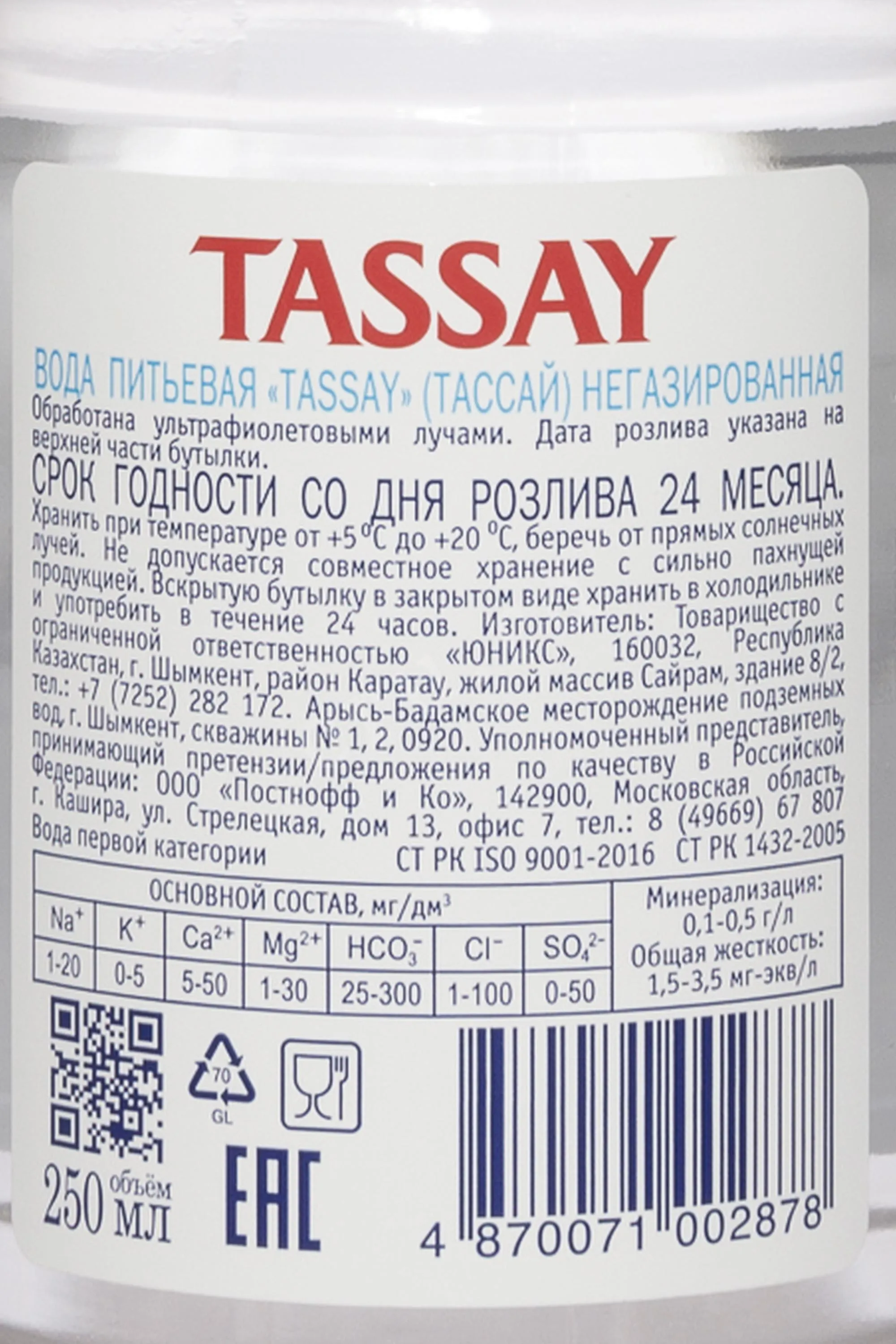 - Удобный формат 0,25 литра делает воду Тассай идеальной для ресторанов, путешествий или коротких перерывов.