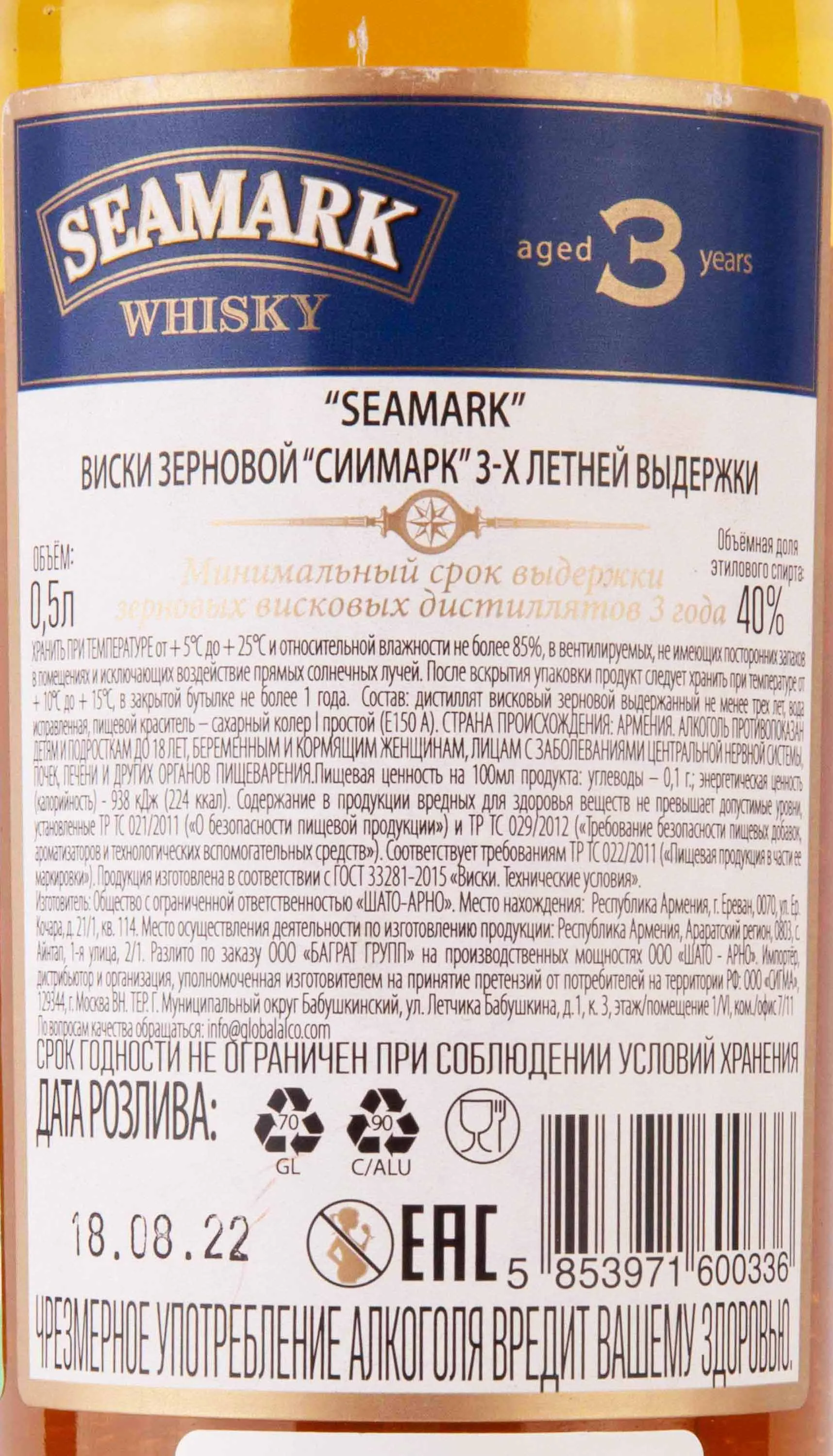 Seamark 3 years 0.5 л купить - Армянский виски Сиимарк 3-х летний цена в магазине г. Москва, ул. Профсоюзная, д. 16/10 10:00-22:00 Ежедневно +7 (495) 920-20-02 info@cru.ru