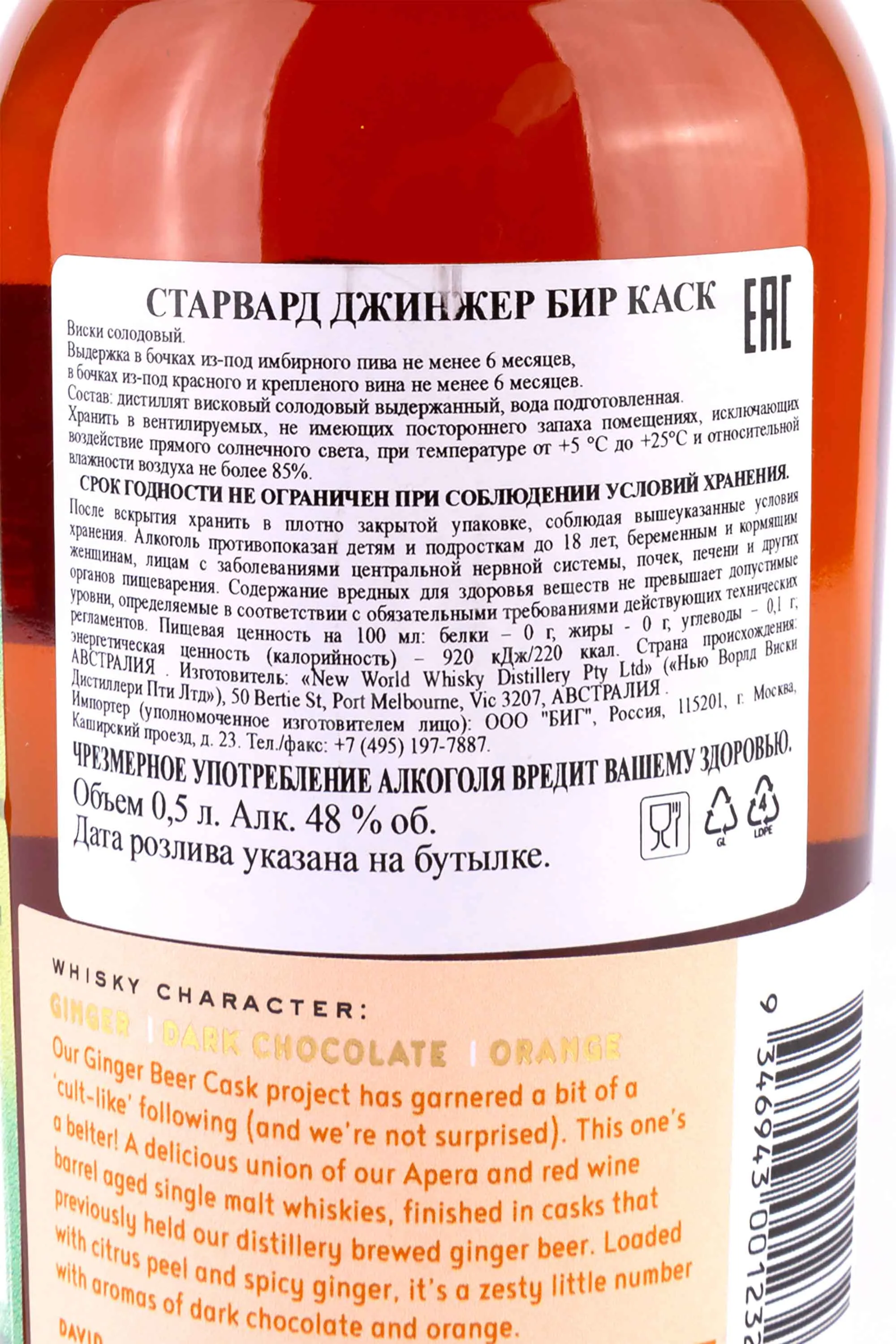 Starward Ginger Beer Cask 0.5 л купить - Австралийский виски Старвард Джинжер Бир Каск цена в магазинег. Москва, ул. Профсоюзная, д. 16/1010:00-22:00 Ежедневно+7 (495) 920-20-02info@cru.ru