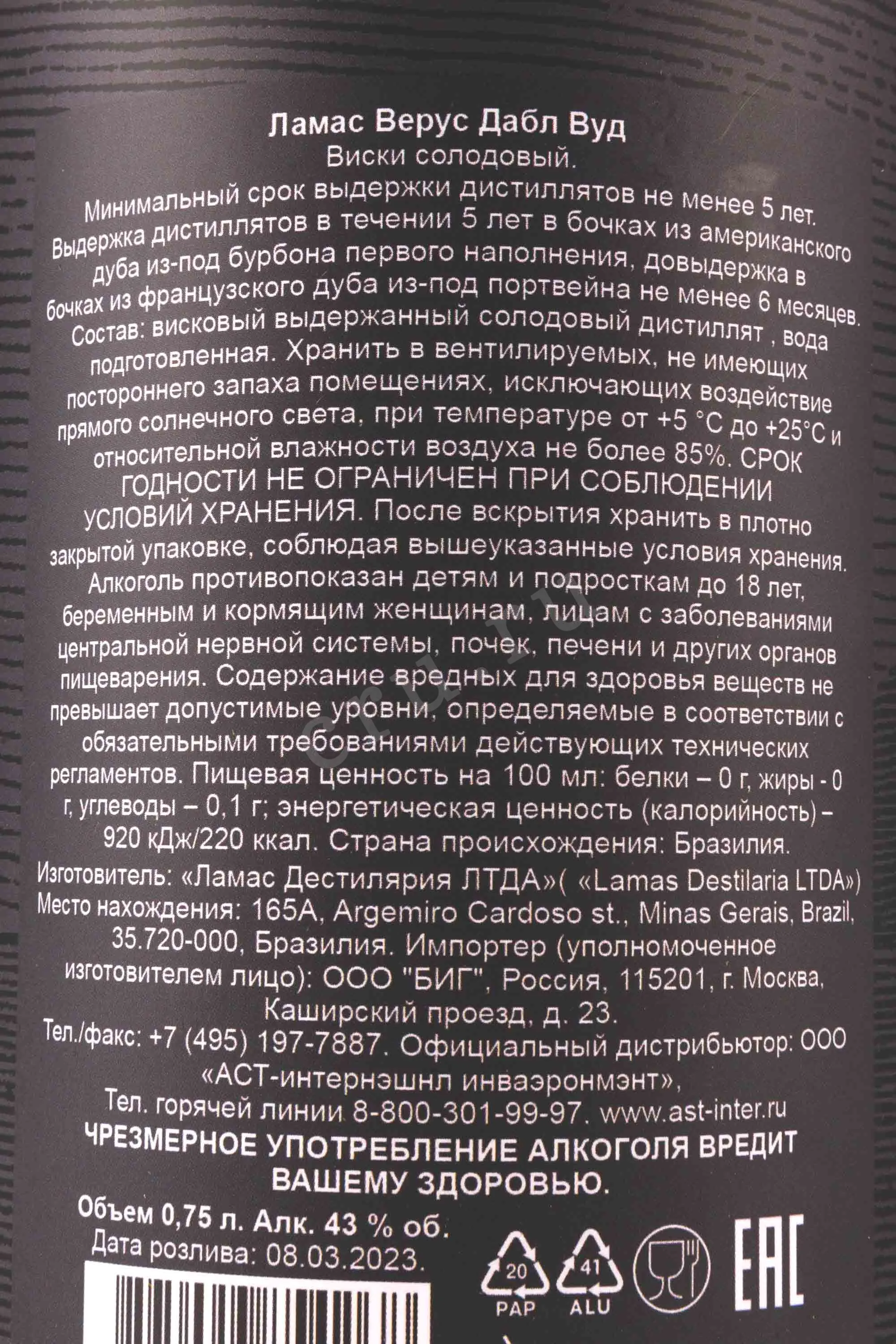 Lamas Verus Double Wood in tube 0.75 л купить - Бразилия Ламас Верус Дабл Вуд в тубе цена в магазинег. Москва, ул. Профсоюзная, д. 16/1010:00-22:00 Ежедневно+7 (495) 920-20-02info@cru.ru