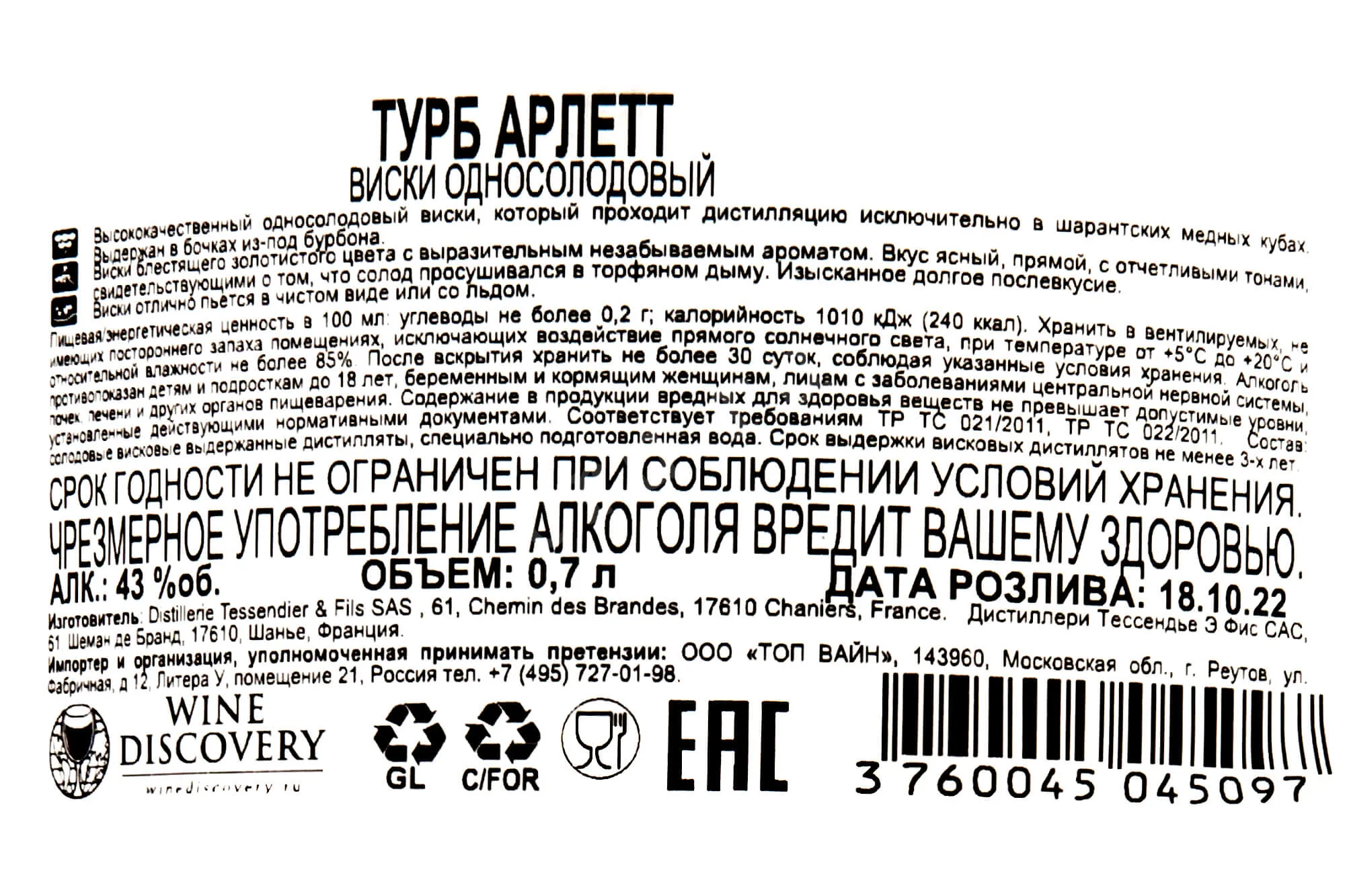 Arlett Tourbe 0.7 л купить - Французский виски Арлетт Турб цена в магазинег. Москва, ул. Профсоюзная, д. 16/1010:00-22:00 Ежедневно+7 (495) 920-20-02info@cru.ru