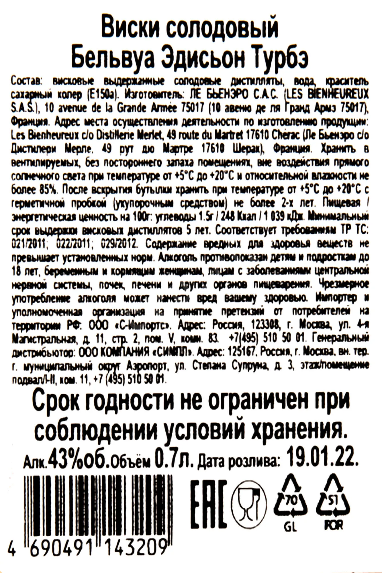 Бельвуа Трипл Молт Эдисьон Турбэ в коробке 0.7