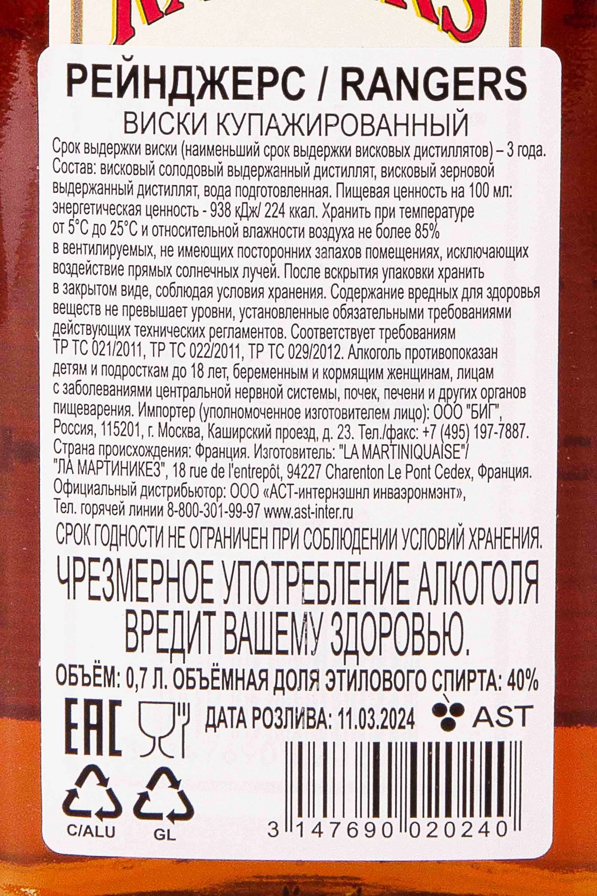 Rangers 0.7 л купить - Французский виски Рейнджерс цена в магазине