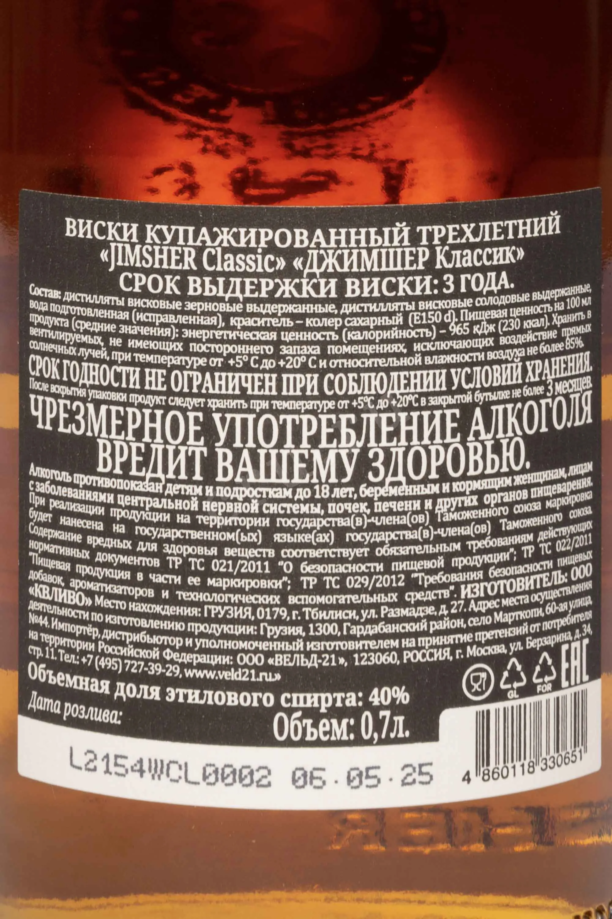 Виски Jimsher Classic 3 Years Old 0.7 л