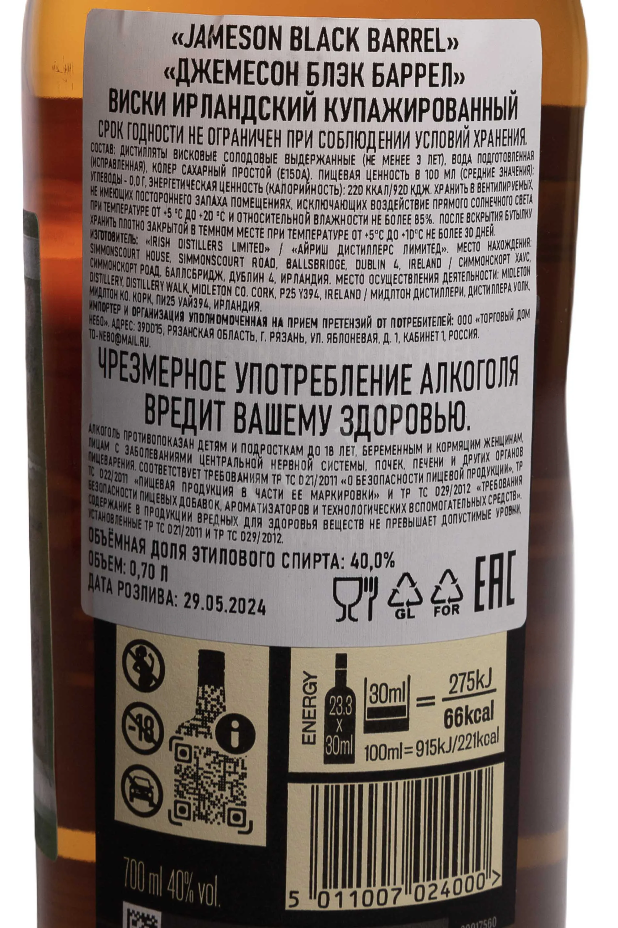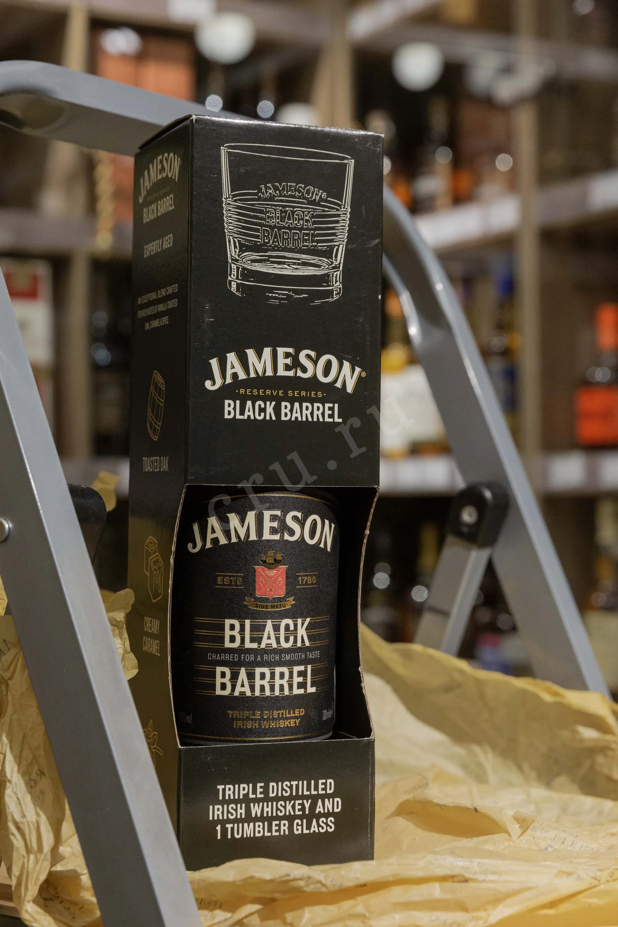 Виски Jameson Black Barrel в подарочной упаковке с одним стаканом 0.7 л — оригинальный презент для особенного повода. Стильно оформленный набор можно преподнести на 23 февраля, профессиональный праздник, юбилей. Джемесон Блэк Баррел — это ирландский купаж с выразительной глубиной и мягким характером. Он создаётся из смеси зерновых и солодовых спиртов (преобладают) типа single pot still, прошедших тройную дистилляцию. Дистилляты выдерживаются от 3 до 16 лет в бочках из-под бурбона, которые подвергают повторному интенсивному обжигу. Именно этот приём усиливает сладкие и пряные оттенки, добавляет плотность и подчёркнутую текстуру. Знаменитый бленд из Ирландии ценят за насыщенное развитие вкуса и продолжительное послевкусие. Он неоднократно получал высокие оценки профессионалов, в том числе 90 баллов от Доминика Роквора из журнала Whisky Advocate.