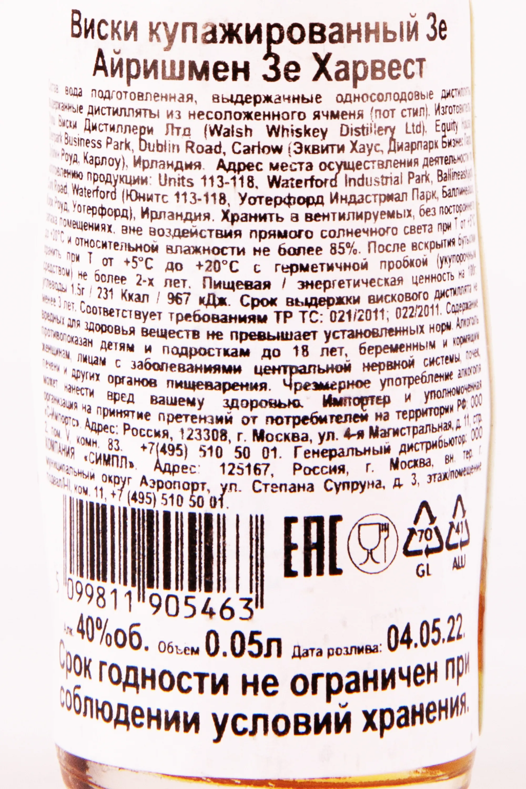 The Irishman The Harvest 3 years 0.05 л