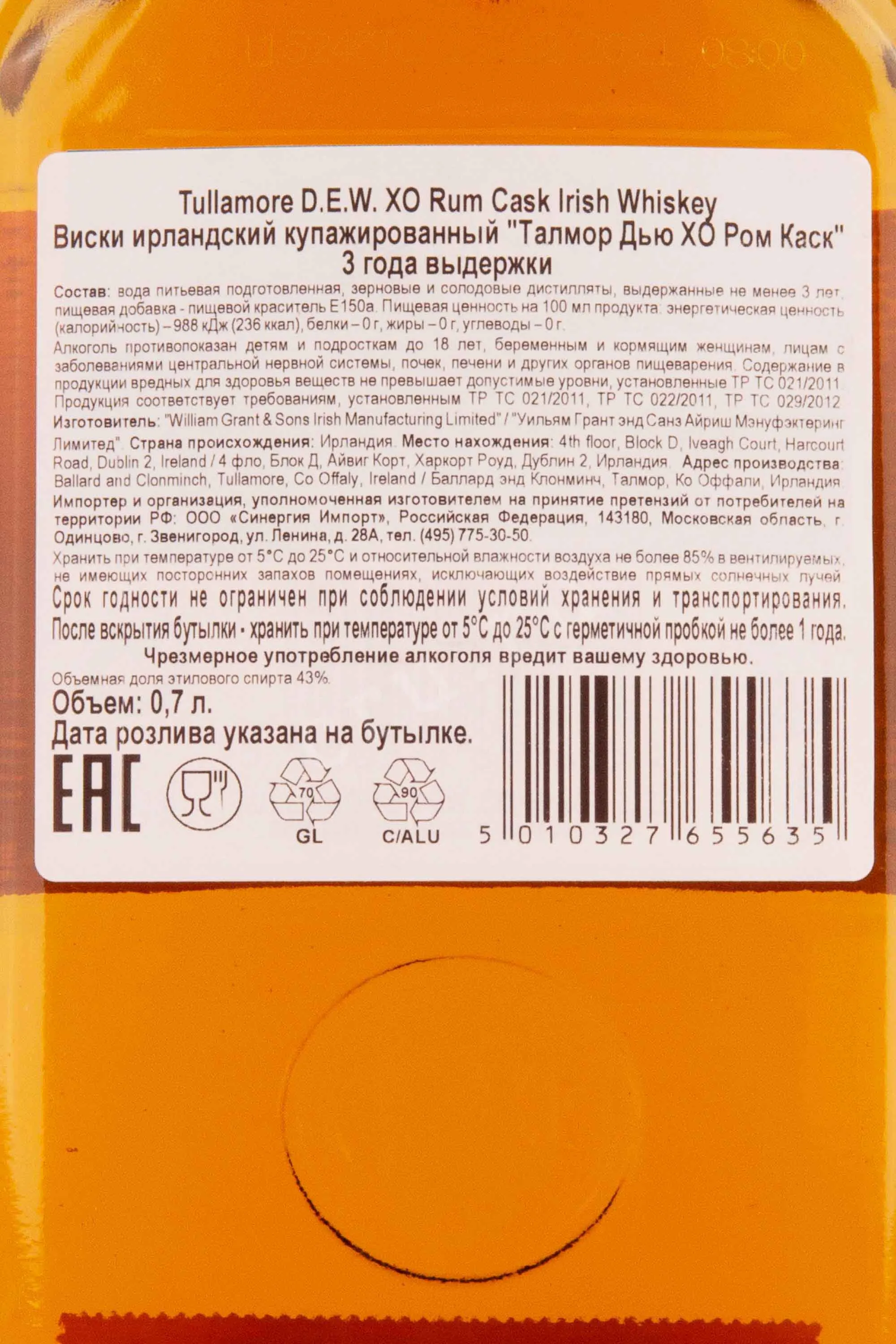 Tullamore Dew XO Caribbean Rum Cask 0.7 л купить - Ирландский виски Талмор Дью ХО Ром Каск цена в магазине