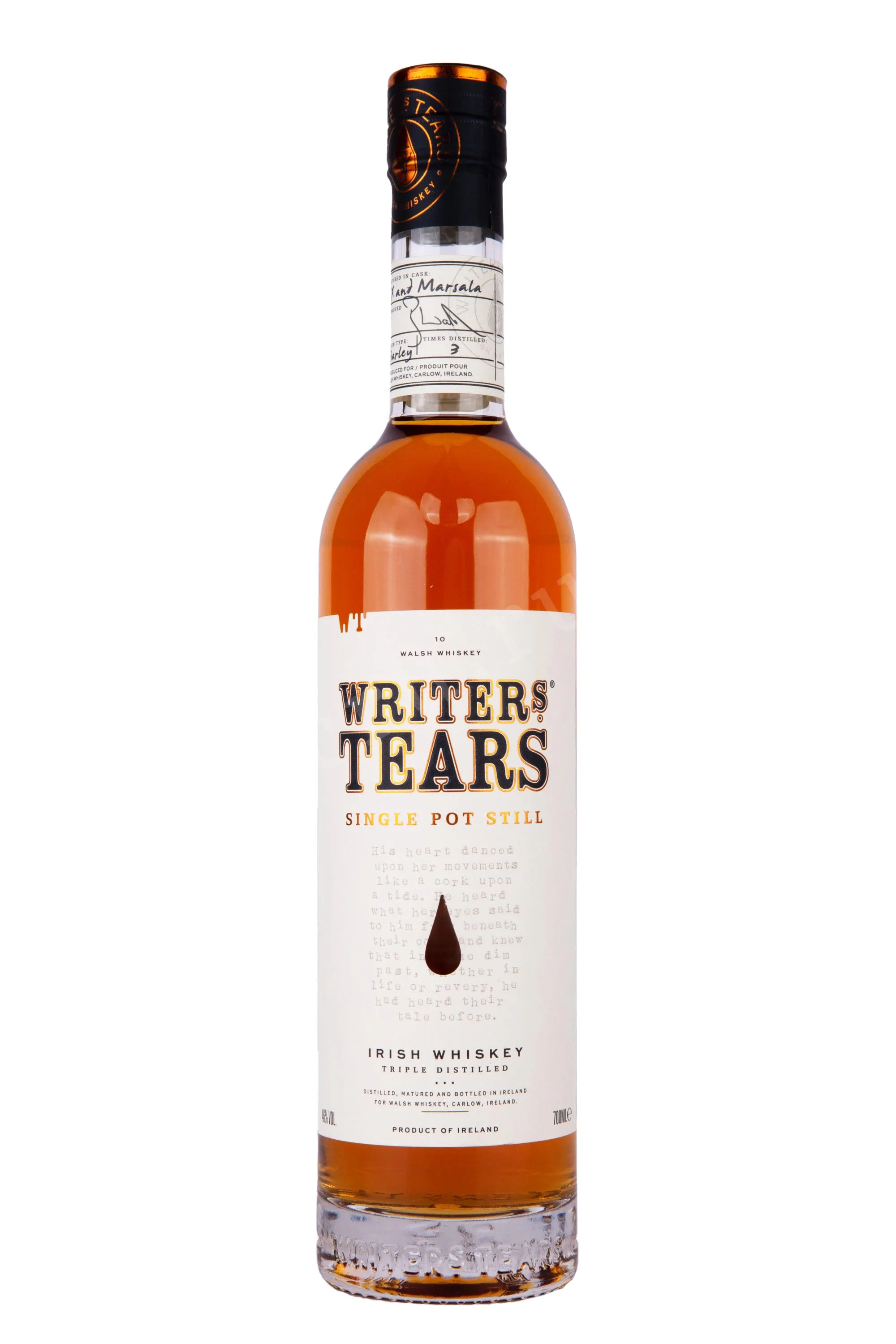 Виски Writers Tears Single Pot Still in gift box 0,7 л выпускается компанией Walsh Whiskey в регионе Карлоу, Ирландия. Этот напиток относится к категории Single Pot Still, что означает изготовление на одной винокурне из смеси соложёного и несоложёного ячменя. После затирания и ферментации сусло перегоняют трижды в медных перегонных кубах. Алкоголь выдерживается в бочках из американского дуба, ранее использовавшихся для бурбона, что добавляет ванильные и карамельные ноты. Также применяются баррики из испанского дуба, где ранее хранилось хересное вино.