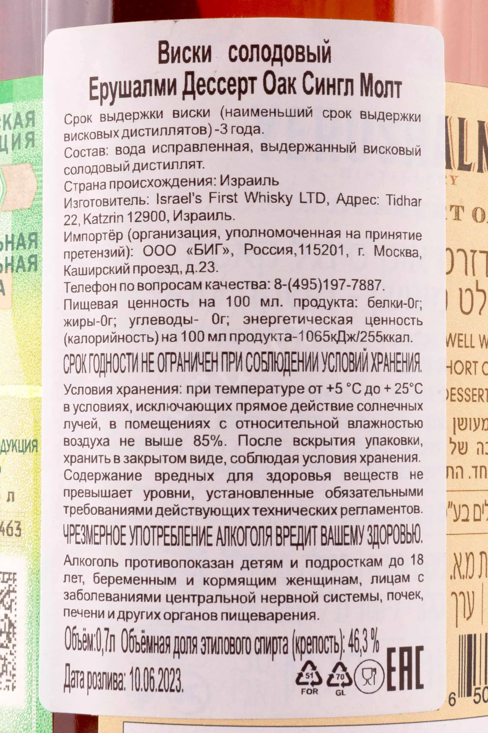 Yerushalmi Solum Dessert Oak 0.7 л купить - Израильский виски Ерушалми Дессерт Оак Сингл Молт цена в магазинег. Москва, ул. Профсоюзная, д. 16/1010:00-22:00 Ежедневно+7 (495) 920-20-02info@cru.ru