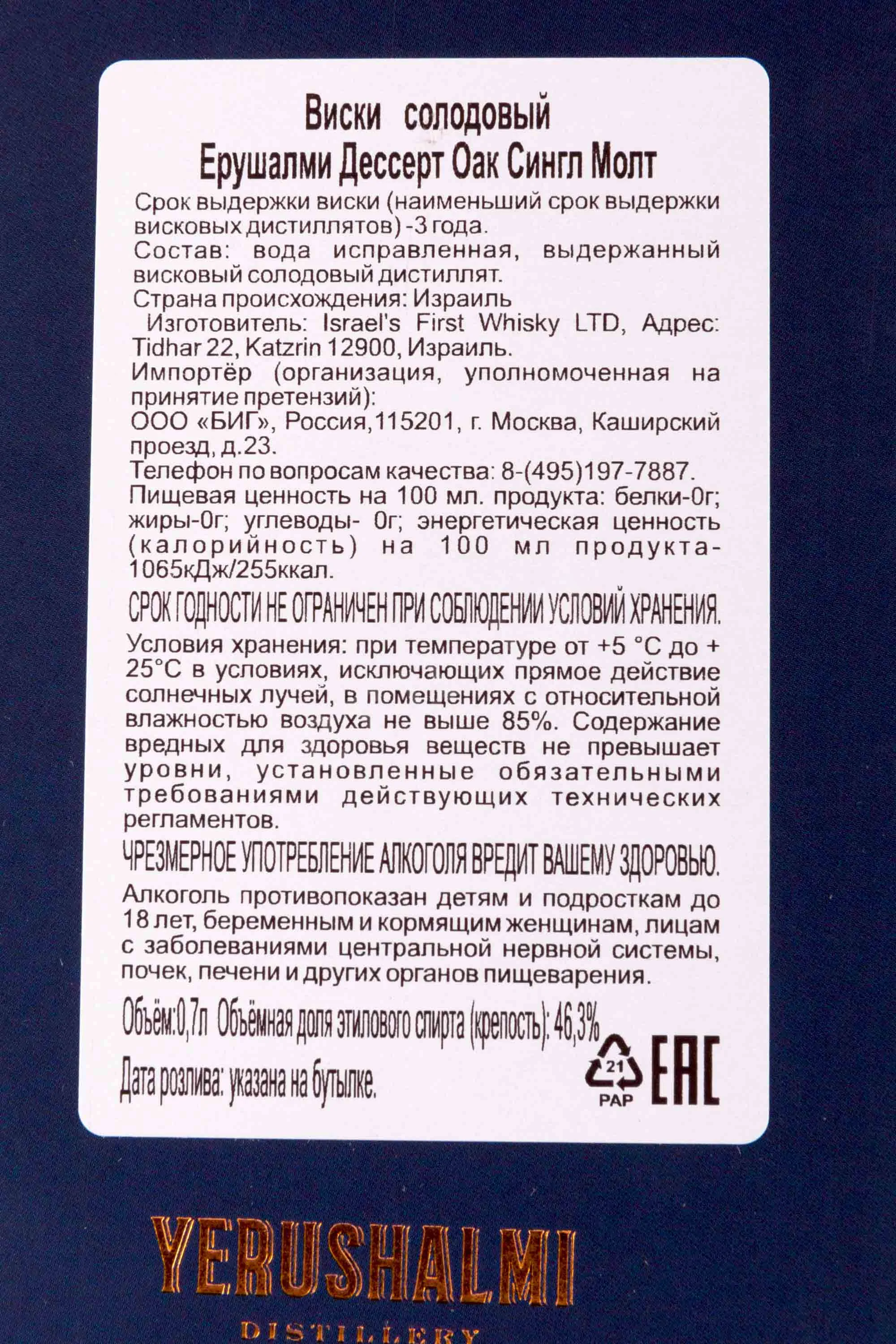 Yerushalmi Solum Dessert Oak gift box 0.7 л купить - Израильский виски Ерушалми Дессерт Оак Сингл Молт в подарочной упаковке цена в магазинег. Москва, ул. Профсоюзная, д. 16/1010:00-22:00 Ежедневно+7 (495) 920-20-02info@cru.ru