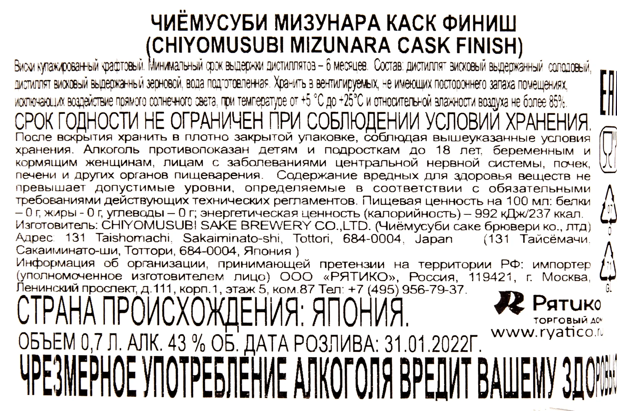 Chiyomusubi Mizunara Cask Finish 0.7 л купить - Японский виски Чиёмусуби Мизунара Каск Финиш цена в магазине