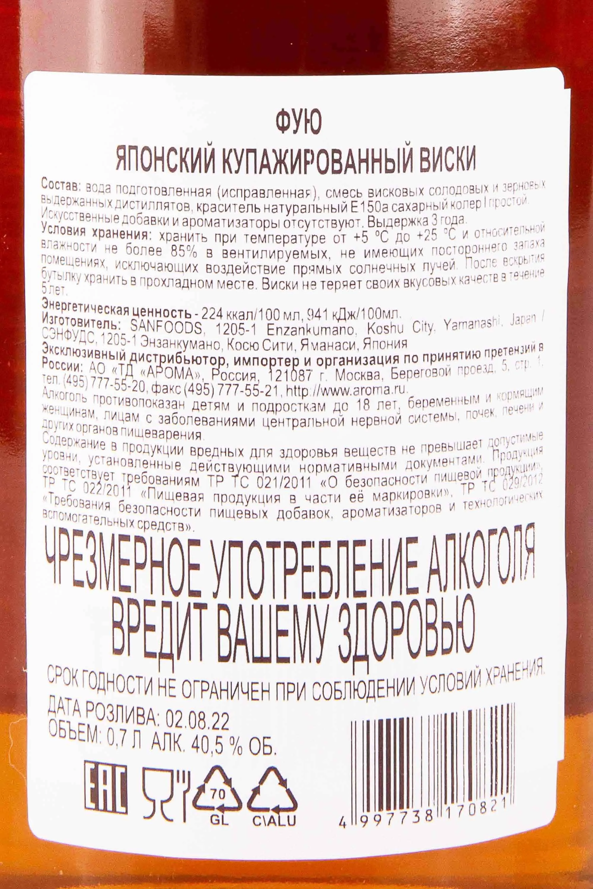 Виски Fuyu gift box 0.7 l – это эксклюзивный купажированный алкоголь от японского производителя, представленный в оригинальной сувенирной упаковке. Созревают дистилляты, полученные методом двойной перегонки, в барриках из белого американского дуба не менее 3-х лет. Перед бутилированием напиток крепостью 40.5% подвергают холодной фильтрации. Виски выпускается ограниченным тиражом – ежегодно не более 50 тысяч бутылок.