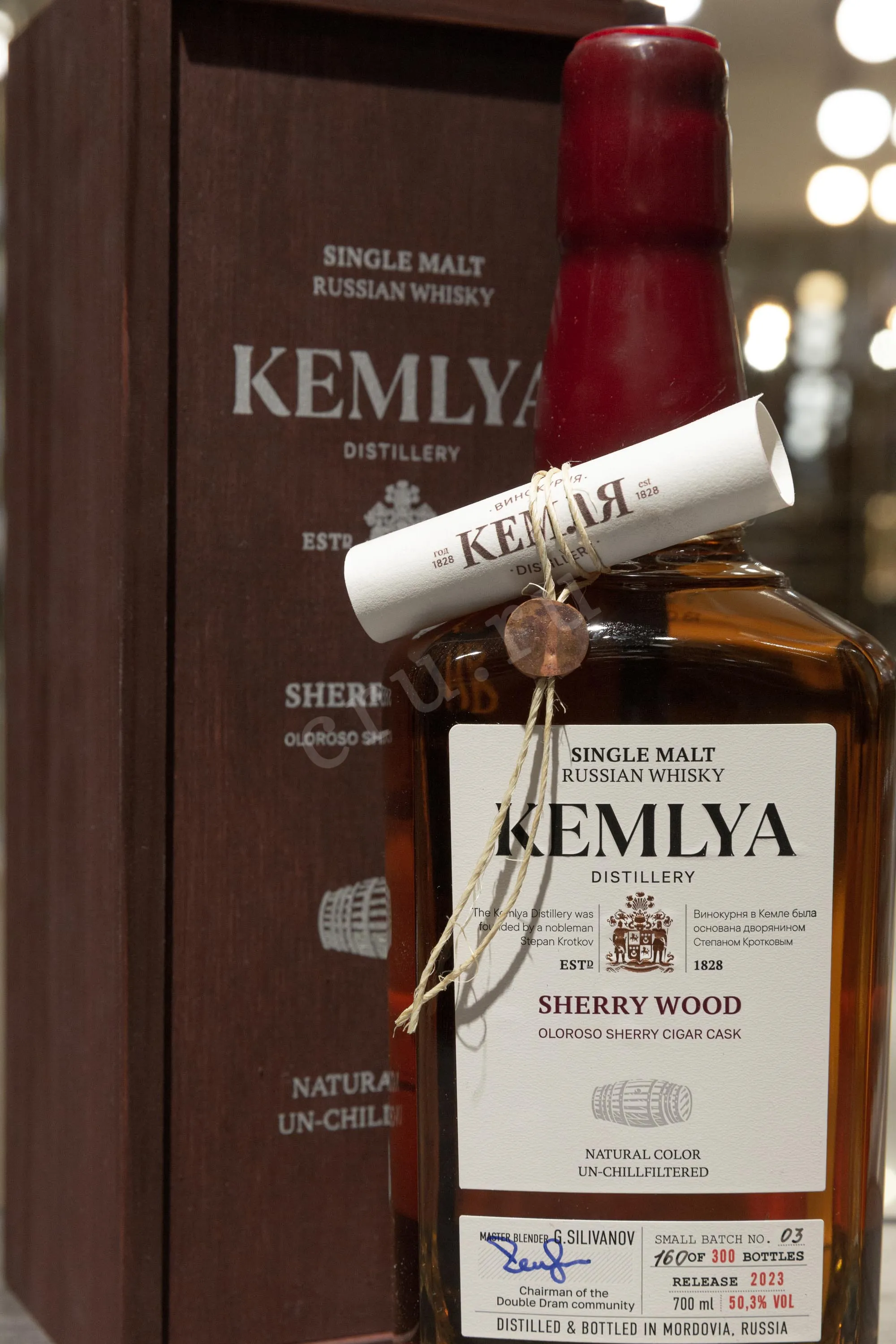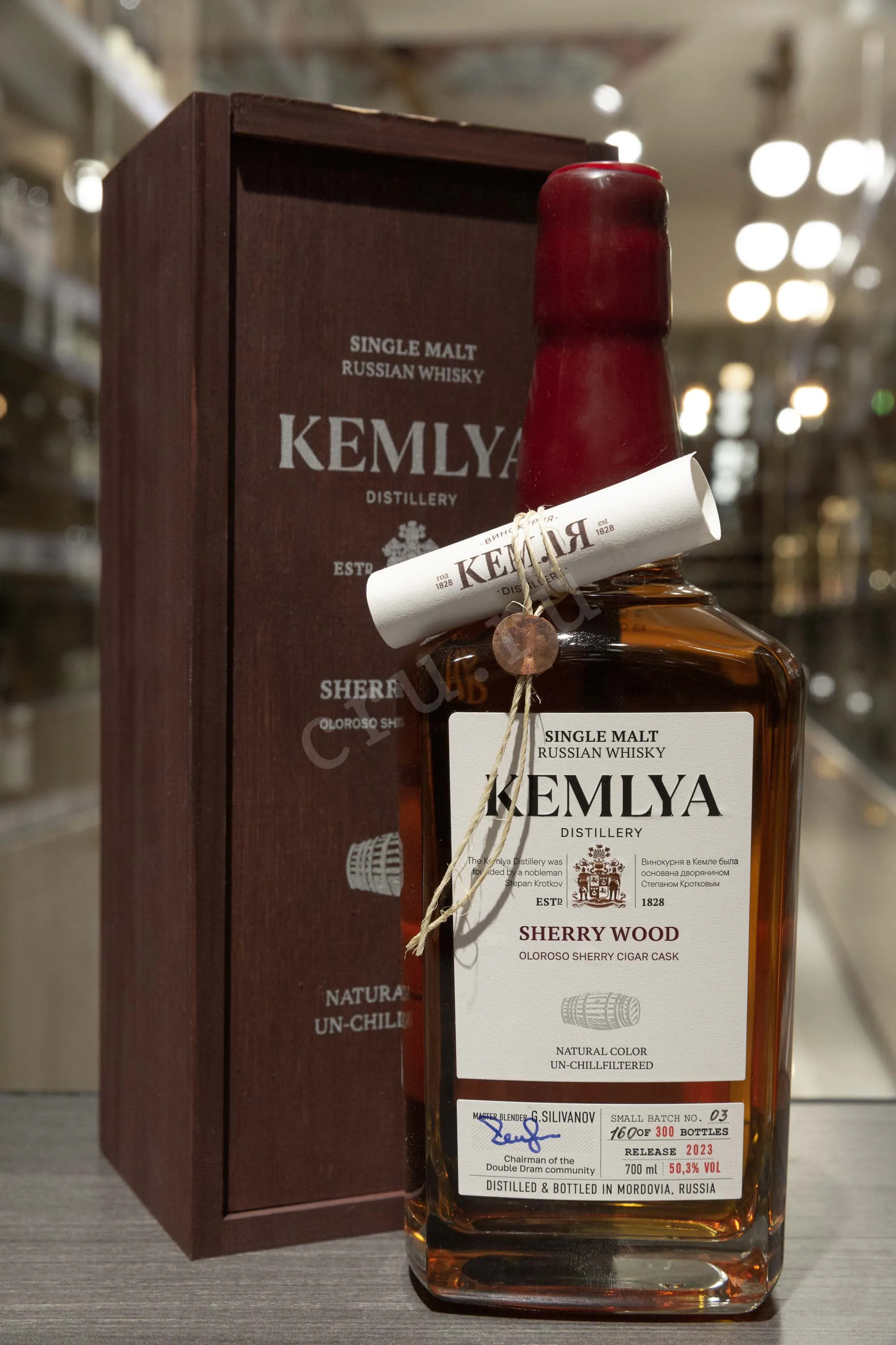 Kemlya Sherry Wood in wooden box 0.7 л купить - Российский виски Кемля Шерри Вуд в деревянной упаковке цена в магазинег. Москва, ул. Профсоюзная, д. 16/1010:00-22:00 Ежедневно+7 (495) 920-20-02info@cru.ru