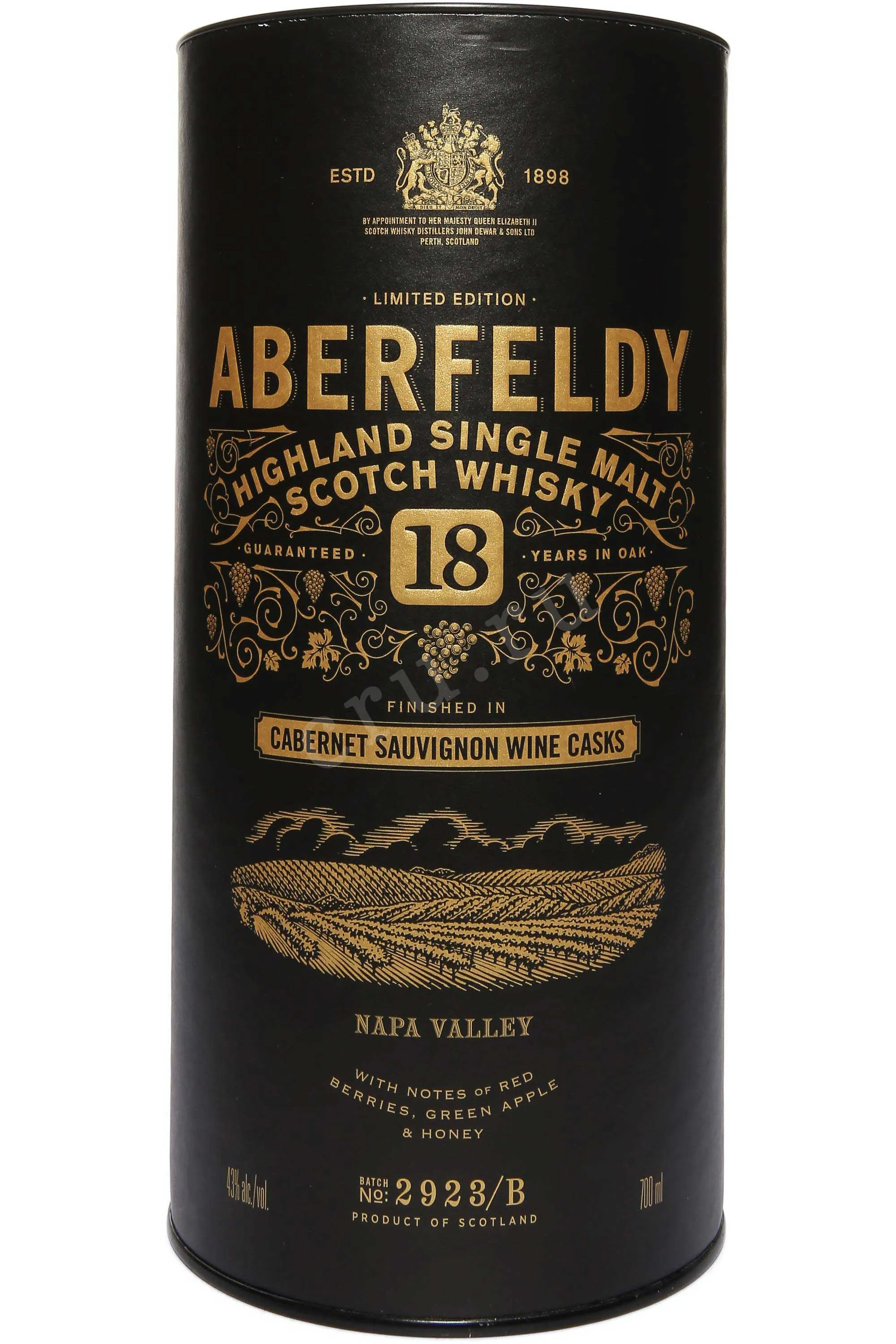 Aberfeldy 18 Years Old Cabernet Sauvignon Wine Cask Finished in tube 0.7 л купить - Шотландский виски Аберфелди 18 Лет Каберне Совиньон Вайн Каск Финишд в тубе цена в магазинег. Москва, ул. Профсоюзная, д. 16/1010:00-22:00 Ежедневно+7 (495) 920-20-02info@cru.ru