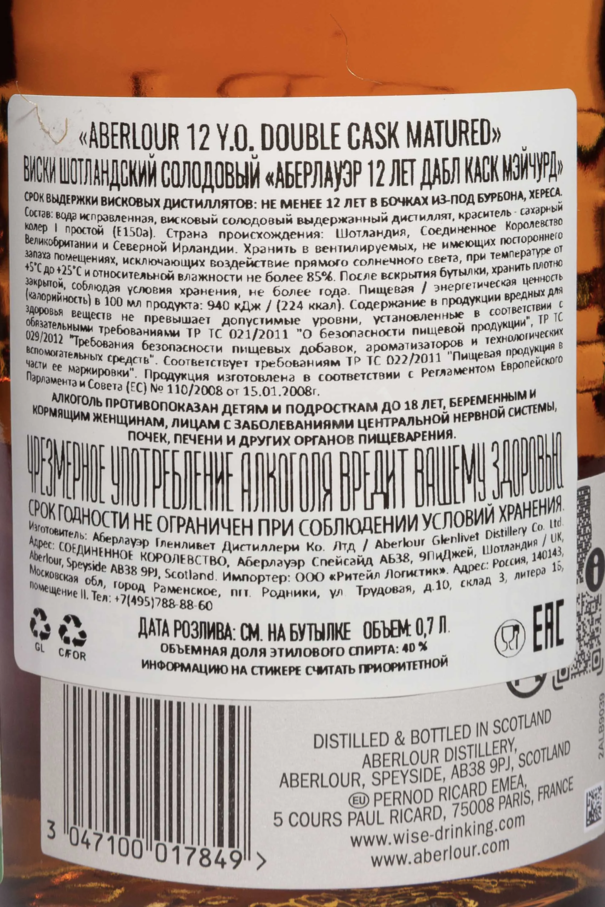 Виски Aberlour 12 years 0.7 л – шотландский скотч из Спейсайда, который изготавливают из многолетних односолодовых спиртов. Процесс созревания напитка происходит методом двойной выдержки: частично в бочках из-под бурбона, а частично – в бочках из-под хереса. Этот способ позволяет виски Аберлауэр 12-летней выдержки обрести глубокий сбалансированный вкус. Металлическая туба делает напиток достойным подарком для ценителей.
