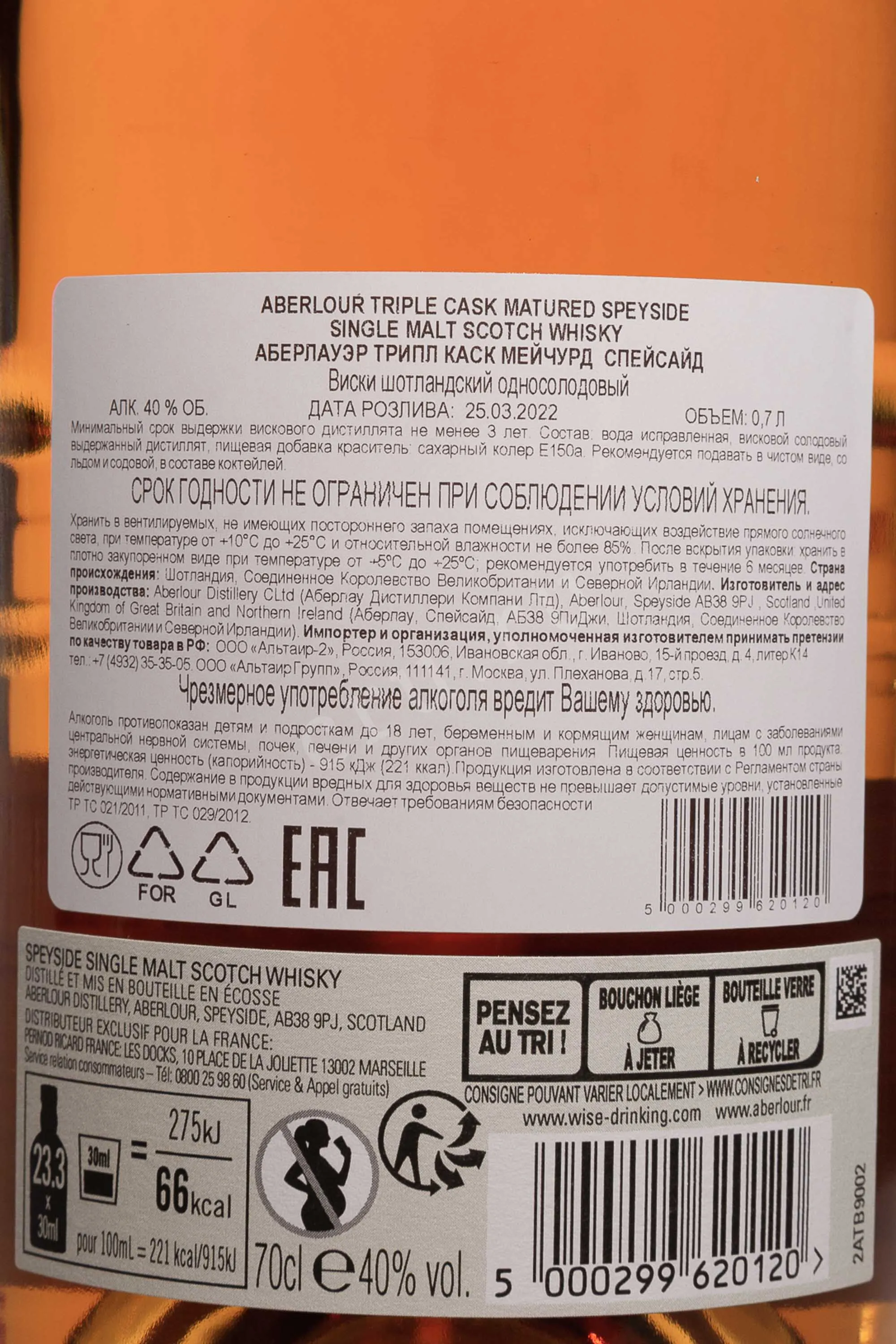 Aberlour Triple Cask Matured Speyside 0.7 л купить - Шотландский виски Аберлауэр Трипл Каск Мейчурд Спейсайд цена в магазине