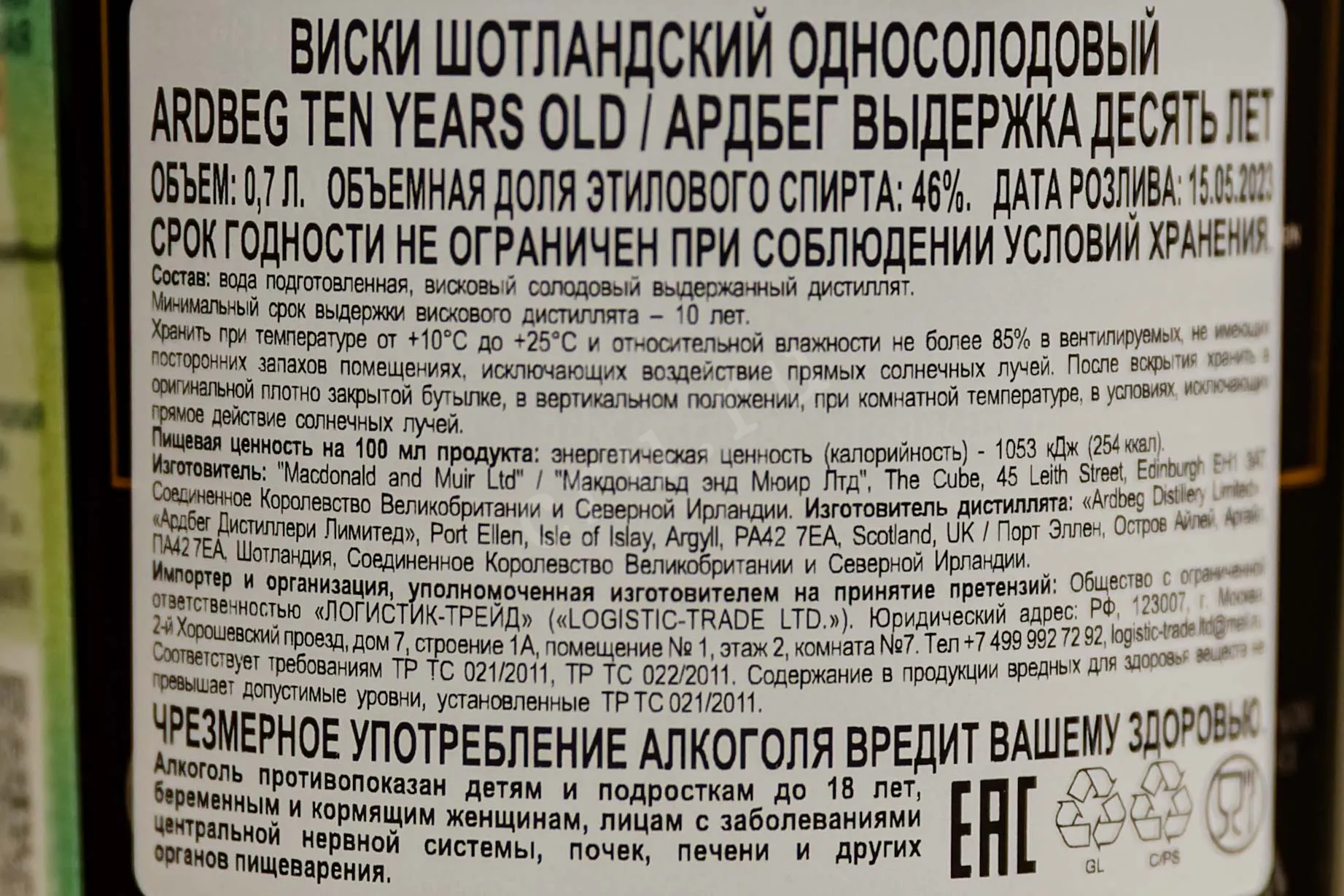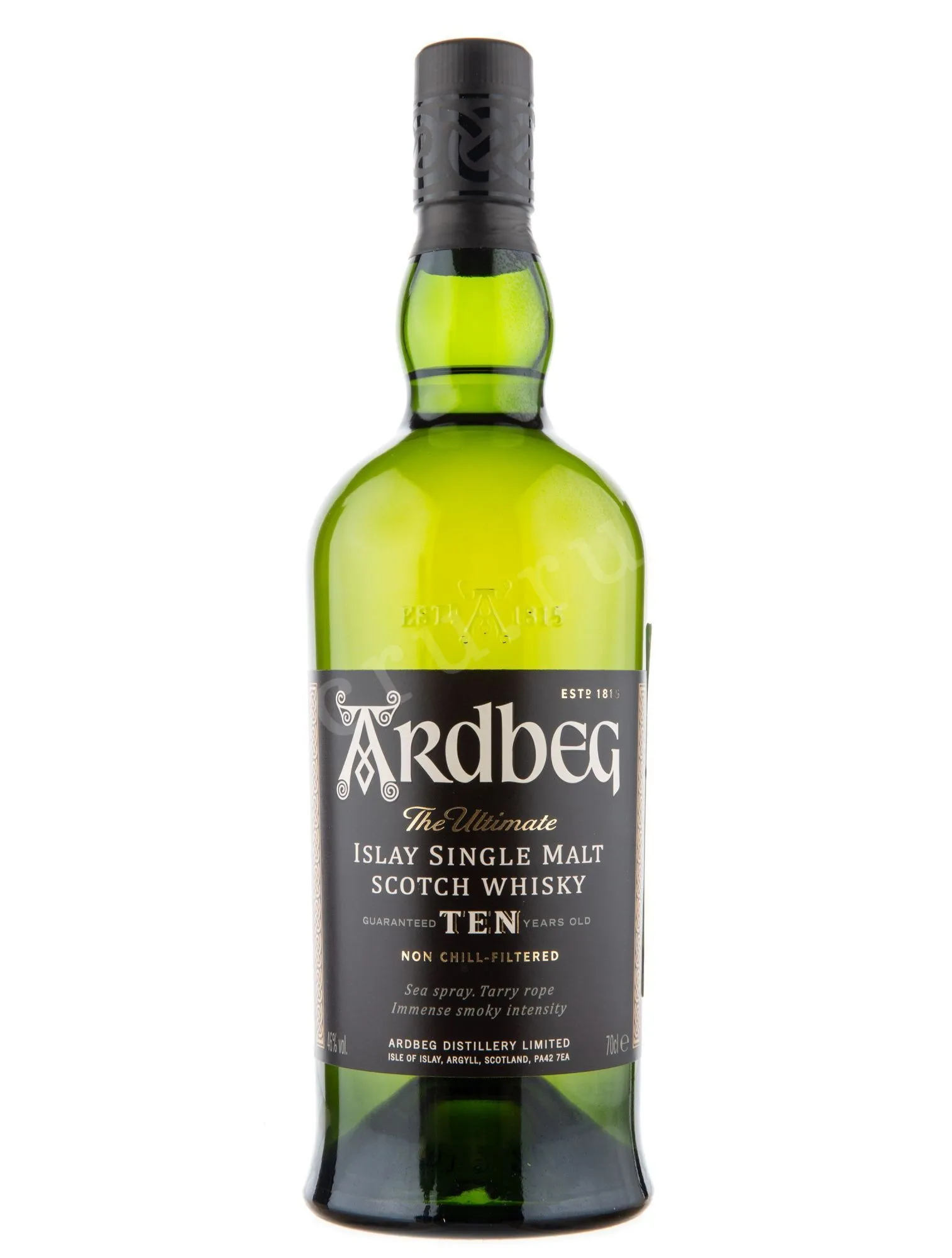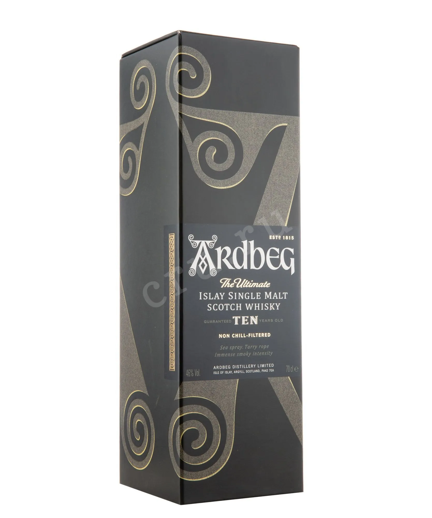 Виски Ardbeg Ten 0,7 л в подарочной упаковке — традиционный односолодовый скотч с выраженным дымным характером. Производится на острове Айла на винокурне Ардбег, существующей с 1815 года. Используются вода из природного источника и ячменный солод, окуренный дымом от торфа. Виски выдерживается в течение 10 лет в бочках из-под американского бурбона и разливается без холодной фильтрации при крепости 46%. Ardbeg Ten считается одним из самых дымных виски в мире. Он неоднократно отмечался престижными международными наградами и высокими оценками критиков.