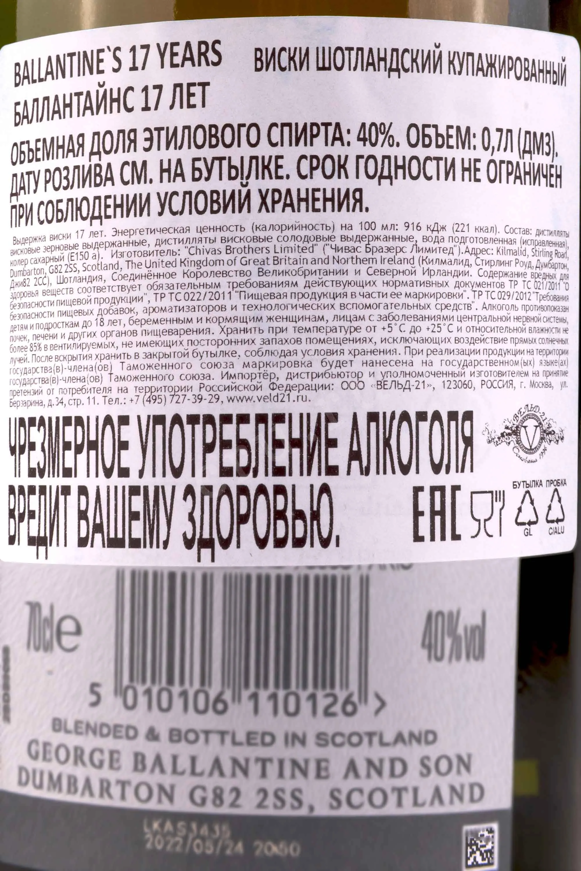 Ballantines 17 years old in gift box 0.7 л купить - Шотландский виски Баллантайнс 17 лет в подарочной упаковке цена в магазинег. Москва, ул. Профсоюзная, д. 16/1010:00-22:00 Ежедневно+7 (495) 920-20-02info@cru.ru