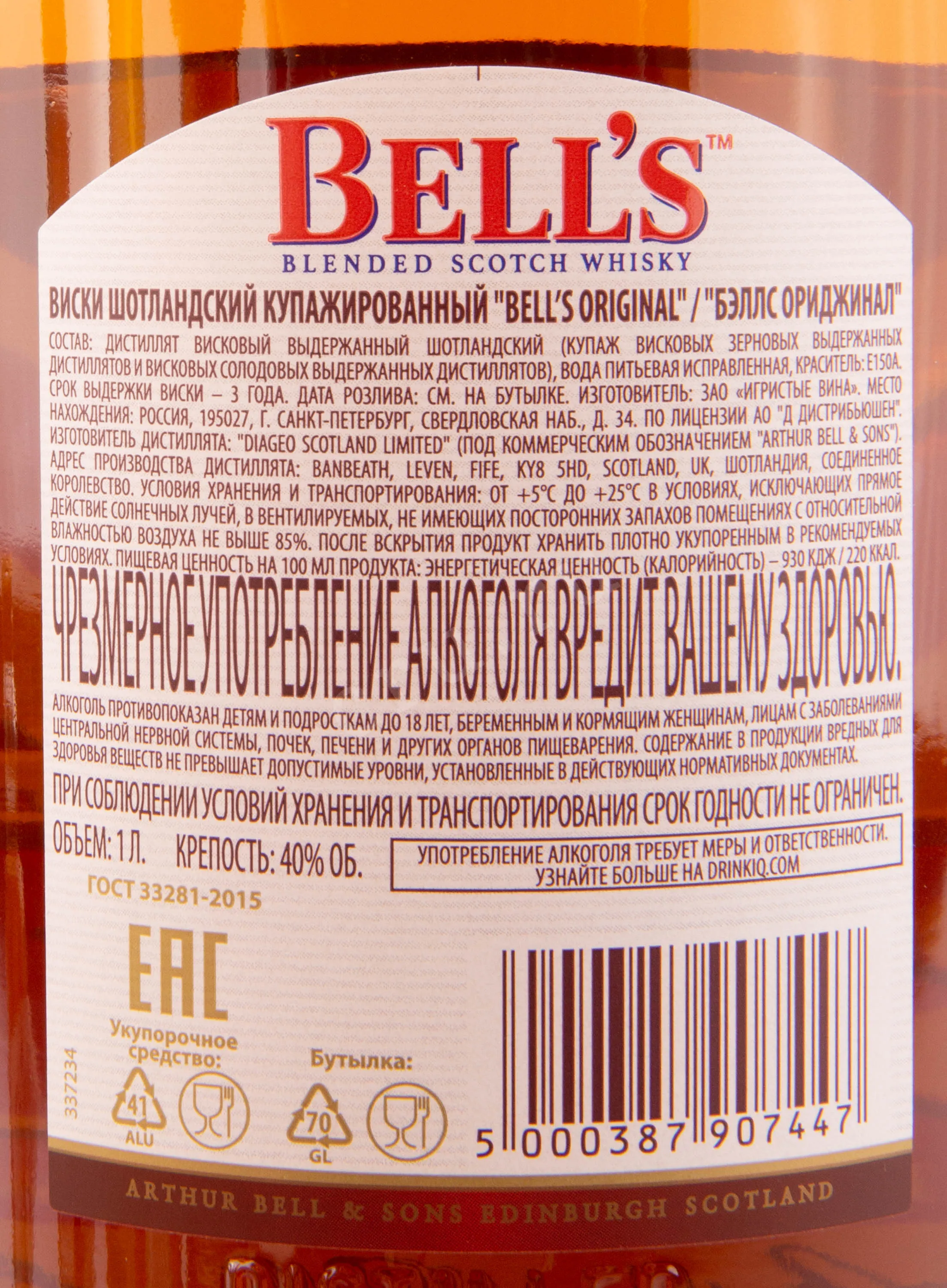 Bell's Original 1 л купить - Шотландский виски Бэллс Ориджинал цена в магазине