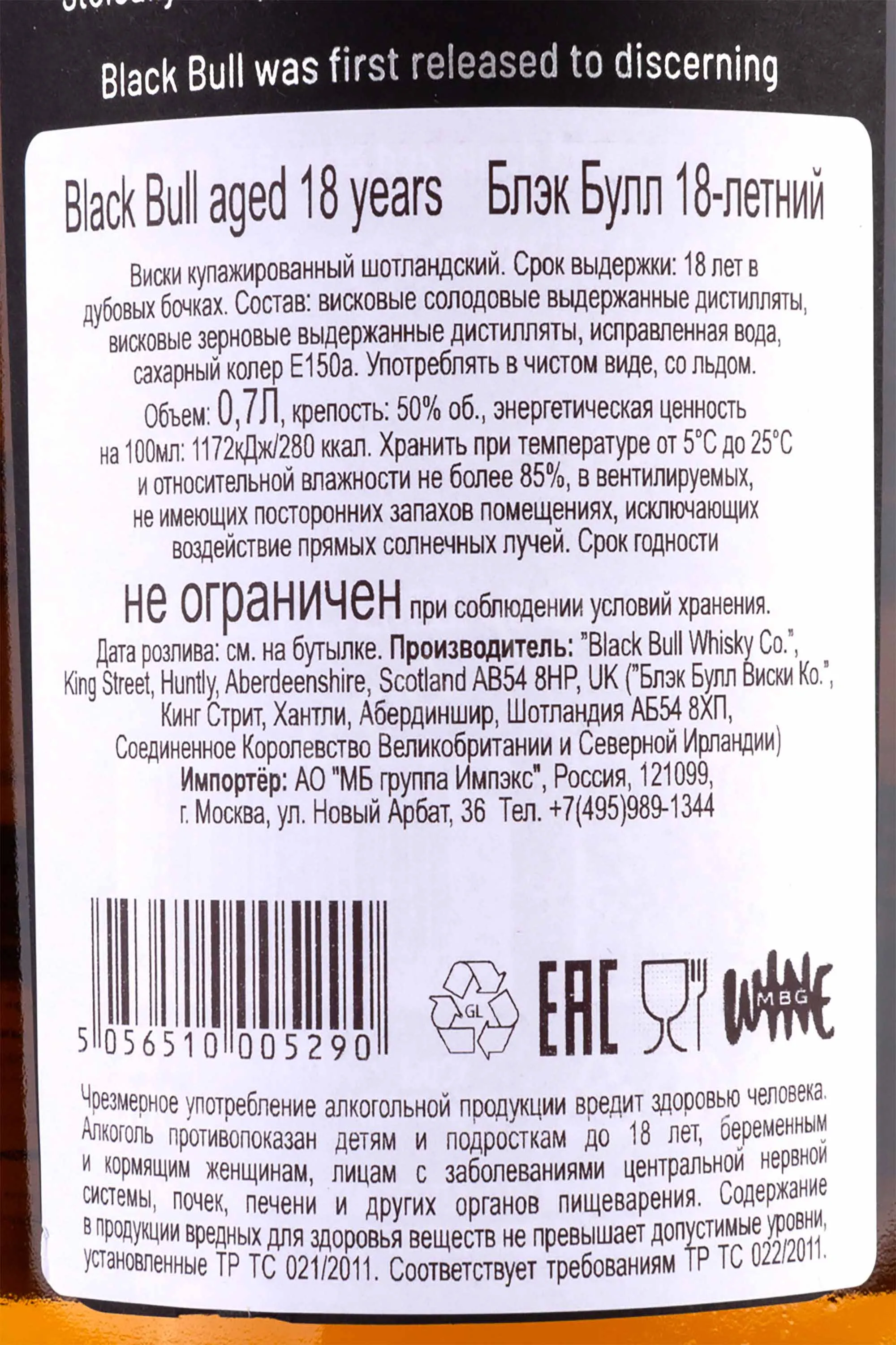 Виски Black Bull Blended 18 years old with gift box 0.7 л был создан мастерами шотландского купажа по традиционным методам, сочетавшим выдержанные зерновые и солодовые спирты. Отборные дистилляты выдерживались в дубовых бочках не менее восемнадцати лет, что позволило достичь оптимальной зрелости и богатой палитры вкусовых нюансов. Особенностью технологии стала ручная сборка купажа небольшими партиями, благодаря чему напиток получил редкую гармонию и глубокий характер, подчеркнутый индивидуальной нумерацией каждой бутылки.