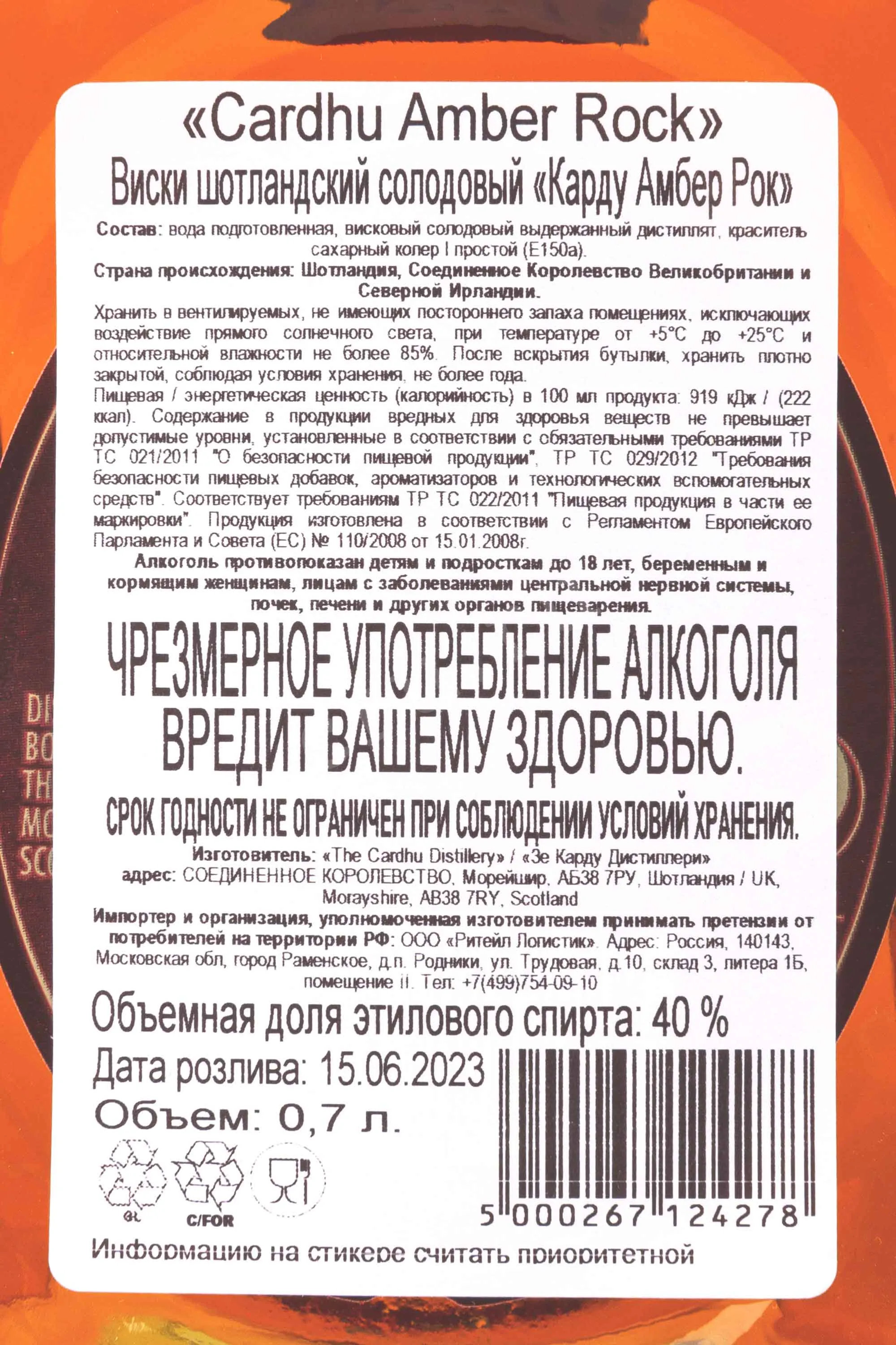 Cardhu Amber Rock in gift box 0.7 л купить - Шотландский виски Карду Амбер Рок в подарочной упаковке цена в магазине г. Москва, ул. Профсоюзная, д. 16/10 10:00-22:00 Ежедневно +7 (495) 920-20-02 info@cru.ru
