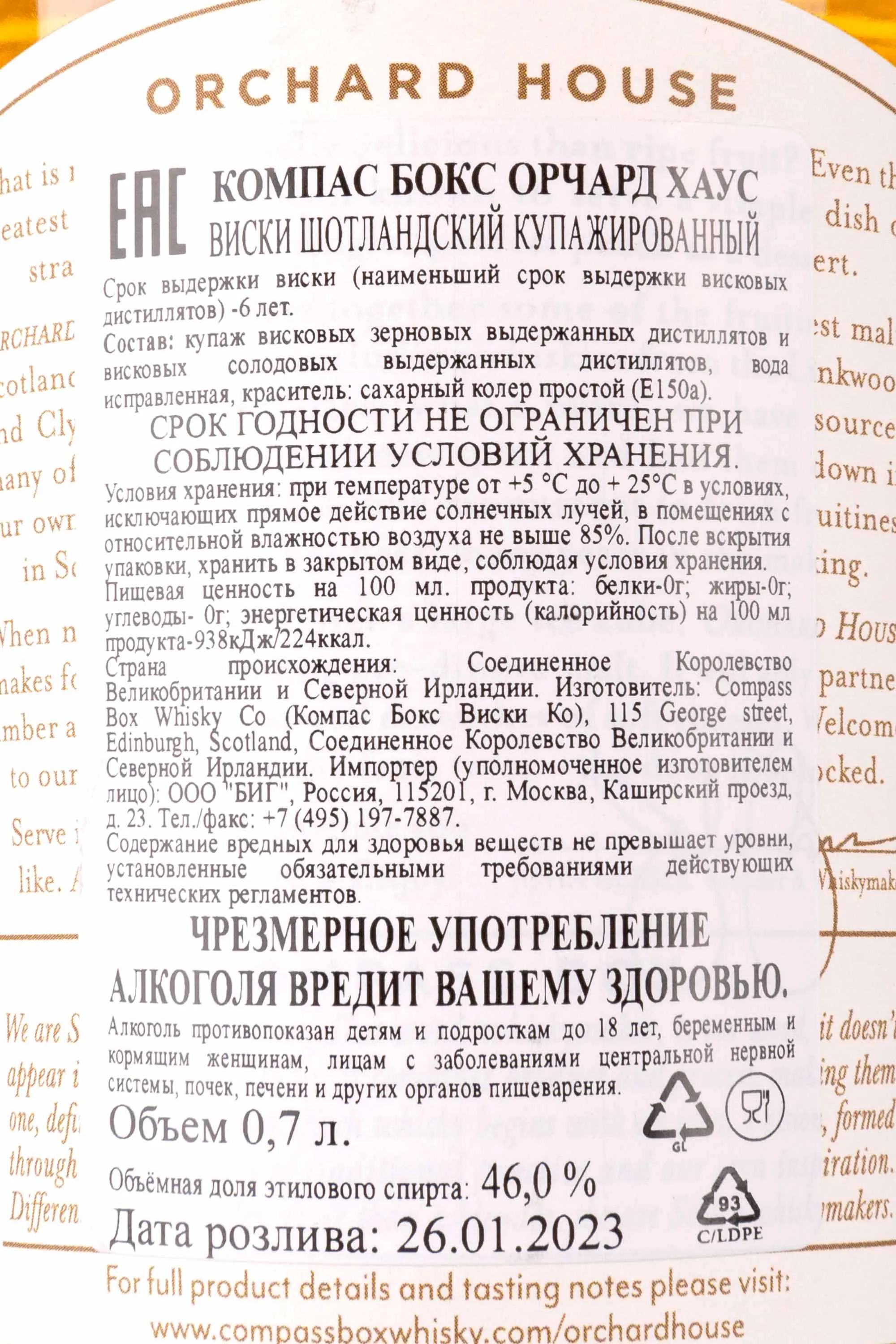 Compass Box Orchard House 0.7 л купить - Шотландский виски Компас Бокс Орчард Хаус цена в магазине г. Москва, ул. Профсоюзная, д. 16/10 10:00-22:00 Ежедневно +7 (495) 920-20-02 info@cru.ru