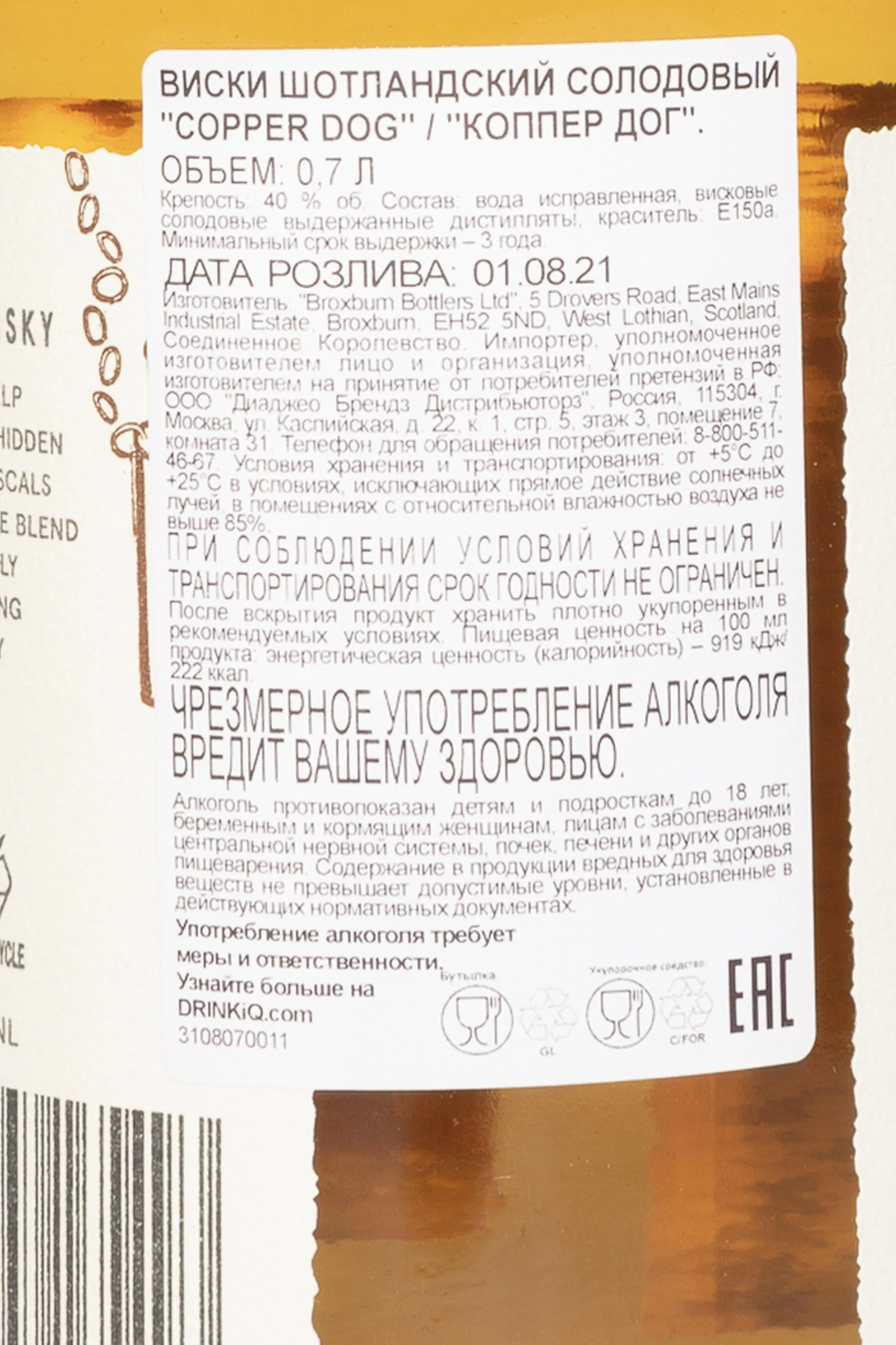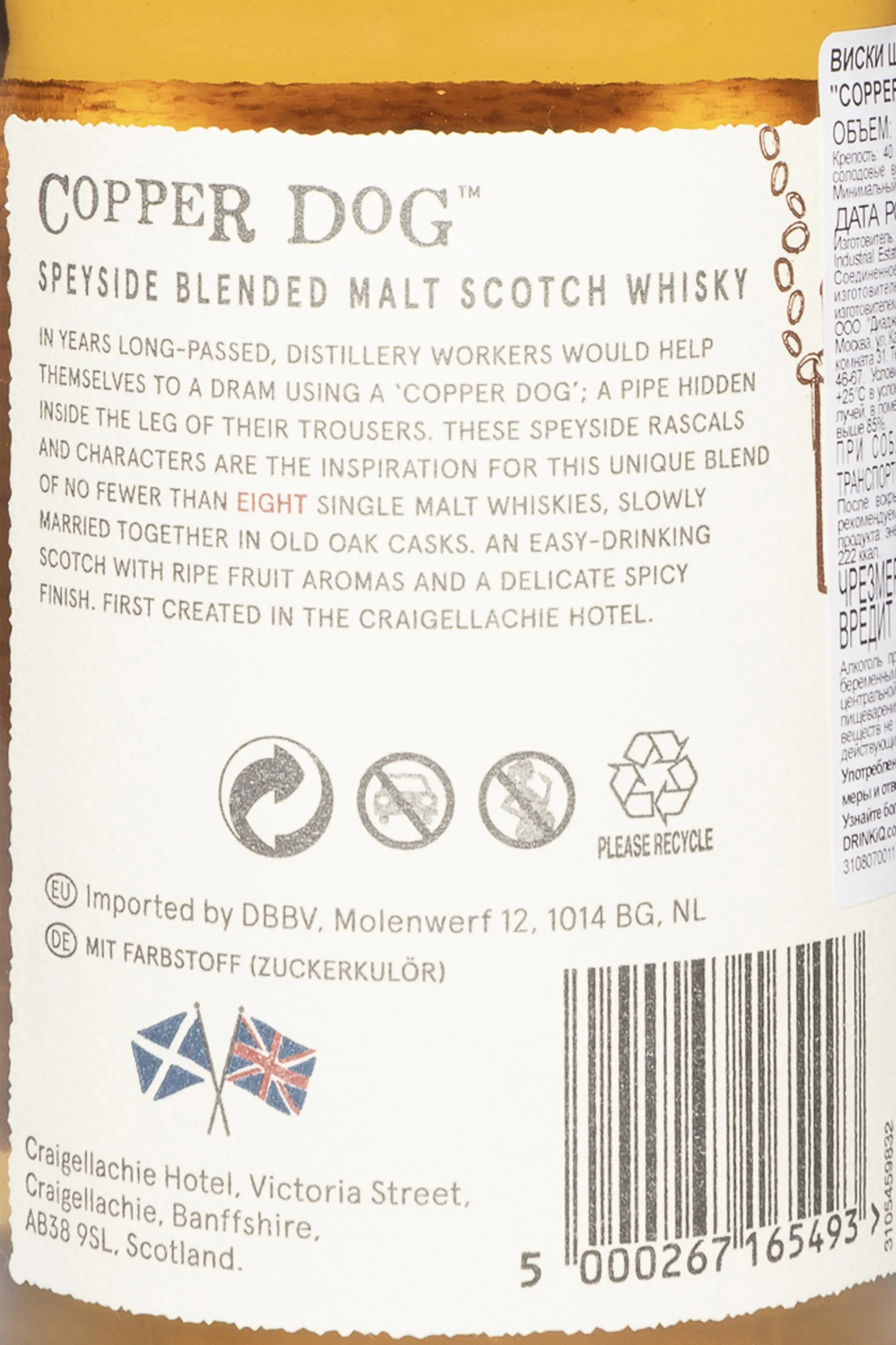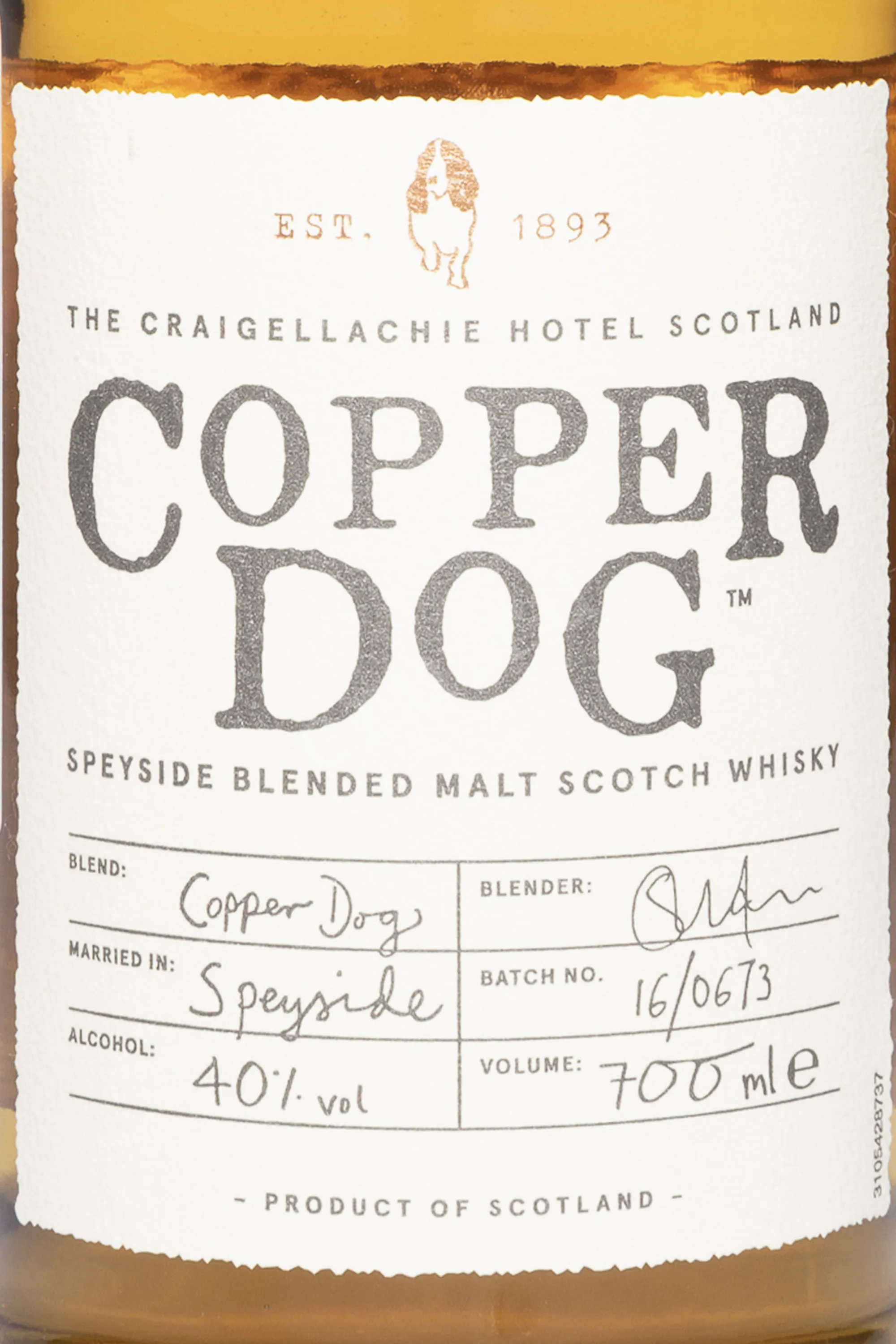 Copper Dog 0.7 l — это мягкий и ароматный купажированный солодовый виски из региона Спейсайд, созданный на основе восьми лучших сортов односолодового виски. Название «Copper Dog» отсылает к медной трубке, которой раньше пользовались работники вискикурен, чтобы тайком пробовать напиток прямо из бочки.