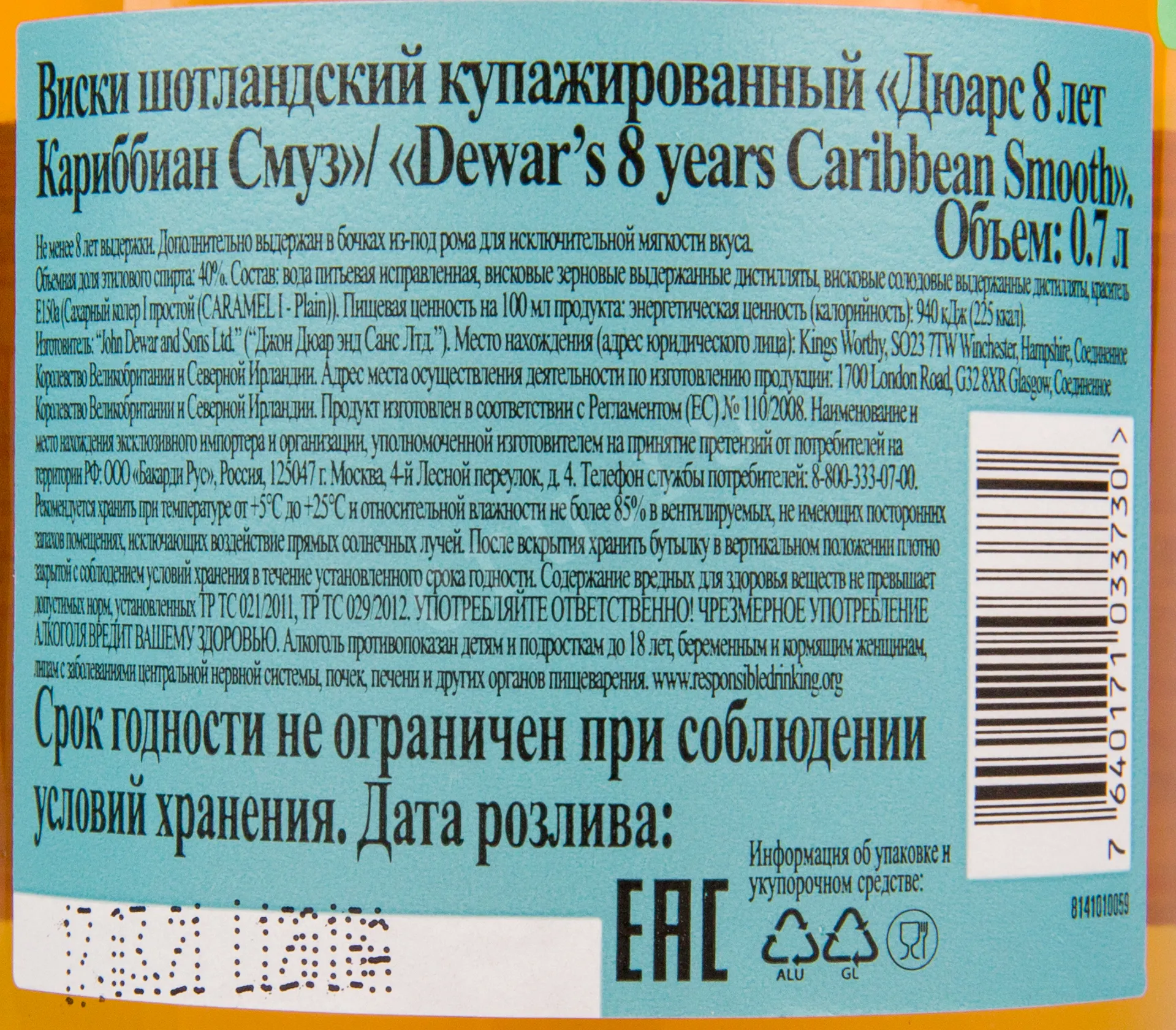 Dewar's Caribbean Smooth 8 Years Old with gift box 0.7 л купить - Шотландский виски Дюарс 8 лет Кариббиан Смуз в подарочной коробке цена в магазине