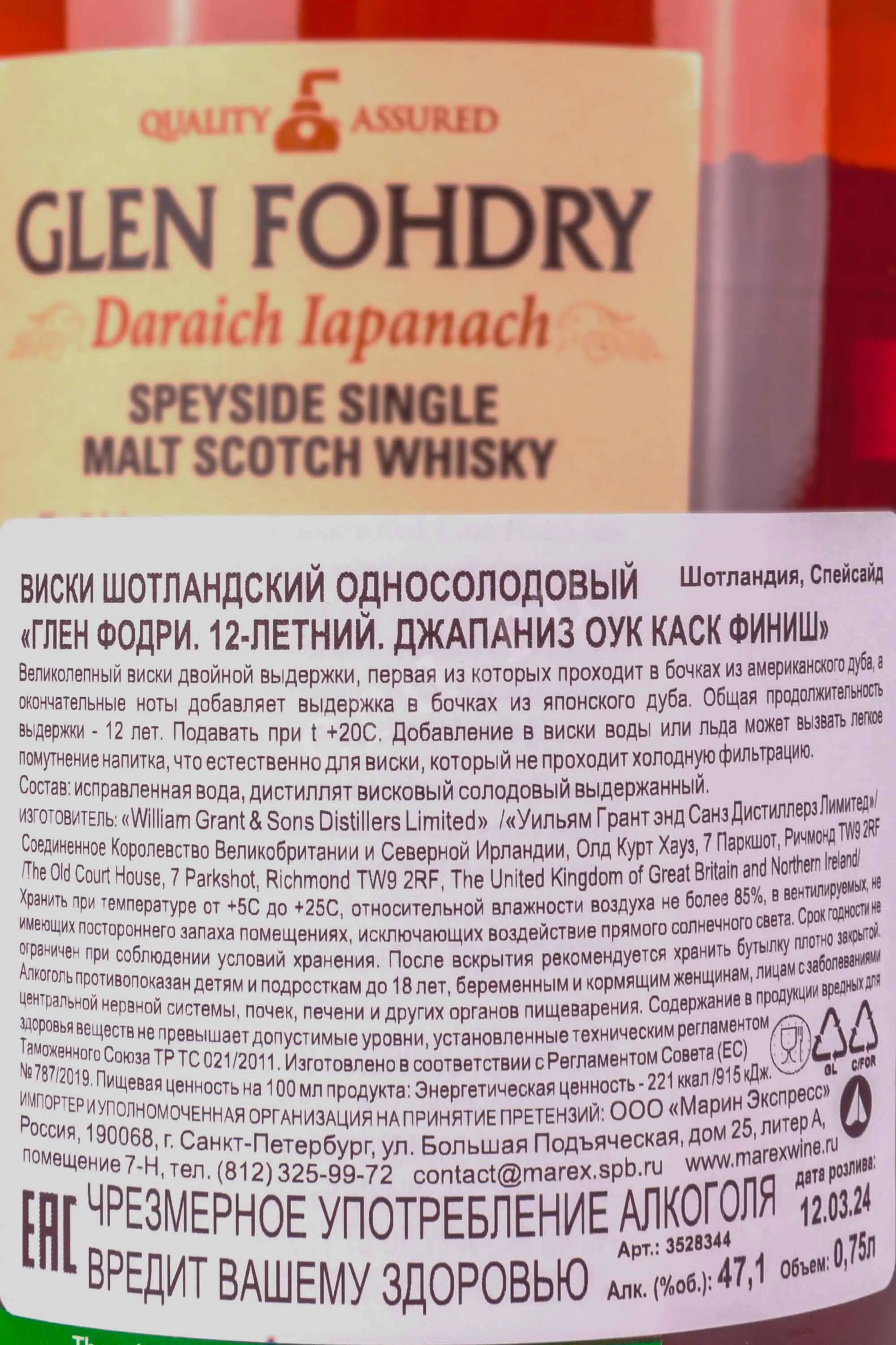 Glen Fohdry Japanese Oak Cask Finish 12 Years Old – это односолодовый шотландский виски из региона Спейсайд, который сочетает в себе классические традиции выдержки в американском дубе и утонченность японского дуба Мидзунара. Этот виски привлекает внимание своим сложным ароматом, насыщенным вкусом и уникальным методом выдержки.