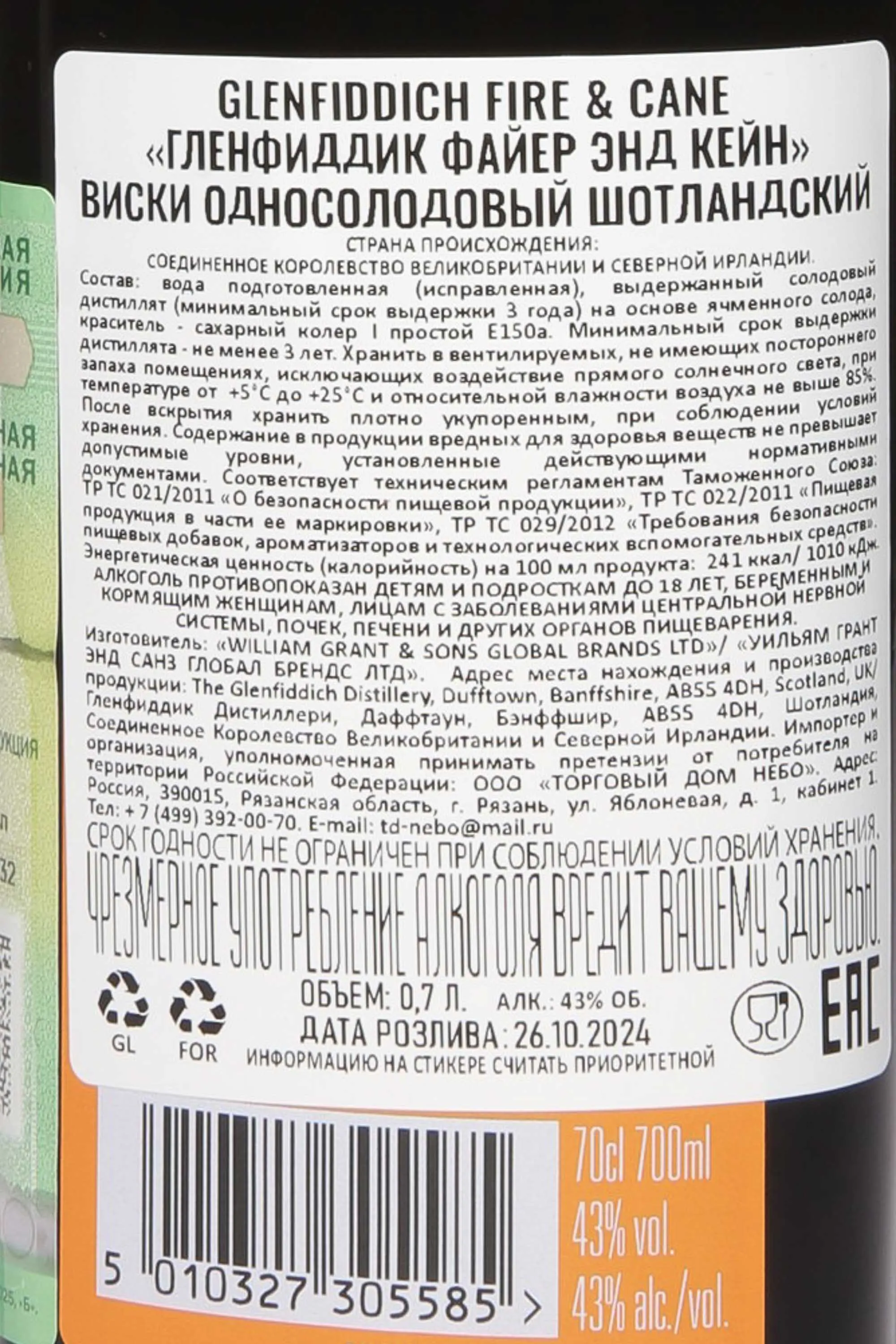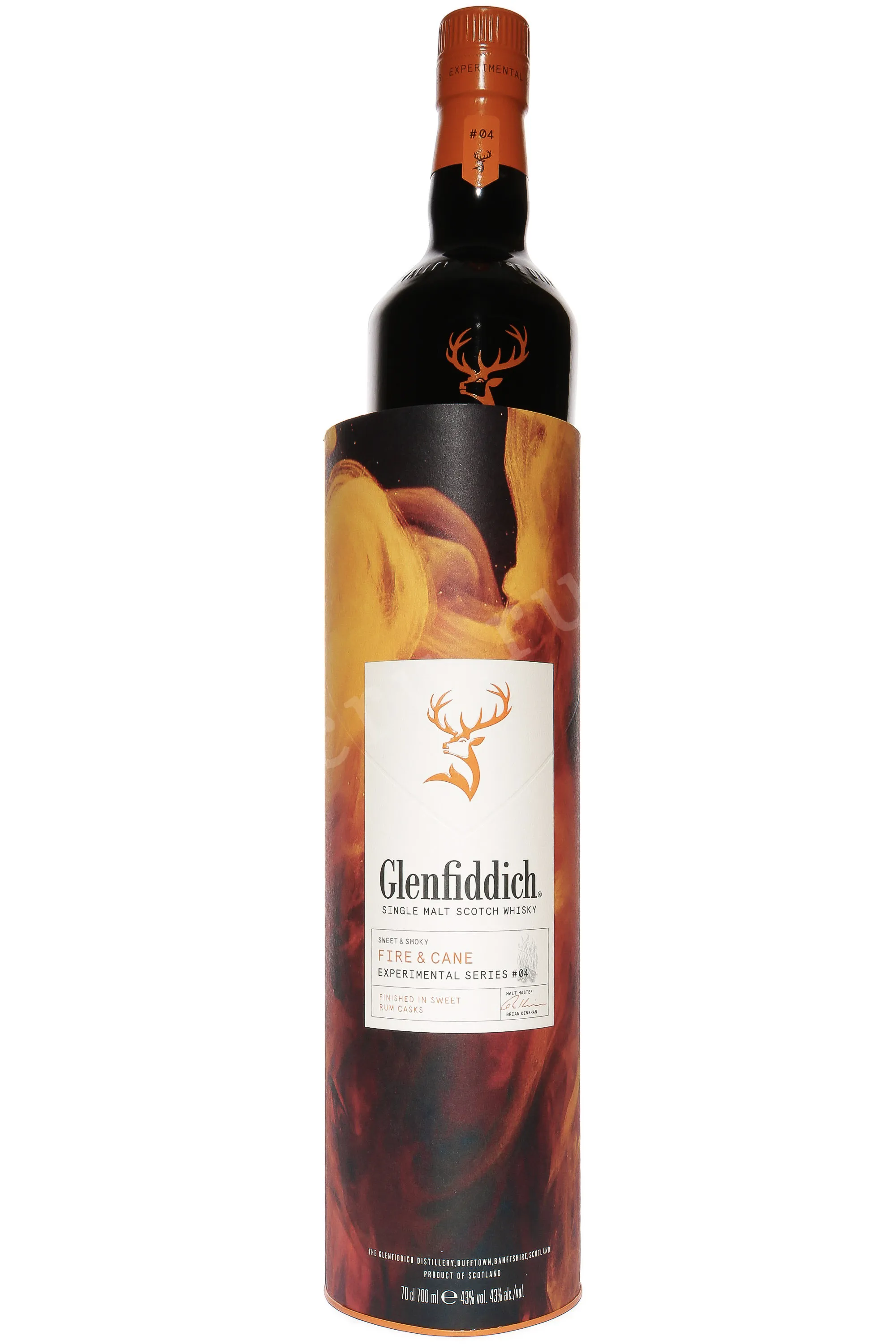 Виски Glenfiddich Fire & Cane 0,7 л в тубе — это оригинальный экспериментальный релиз от мастера купажа бренда Брайана Кинсмана. Напиток создан на основе спиртов из торфяного ячменя, что придает ему мягкий дымный характер. Базовая выдержка проходила в традиционных бочках из-под бурбона, а финальный отделочный этап — в бочках из-под рома (смесь сортов Карибских островов и Южной Америки). Такой подход позволил соединить насыщенную солодовую основу с нотами сладости и пряности, сделав вкус глубже и богаче. Коллекция, частью которой стал этот релиз, известна смелыми экспериментами и высокими оценками критиков, а сам Fire & Cane быстро получил признание среди ценителей как редкий пример удачного объединения традиций и новаторства.